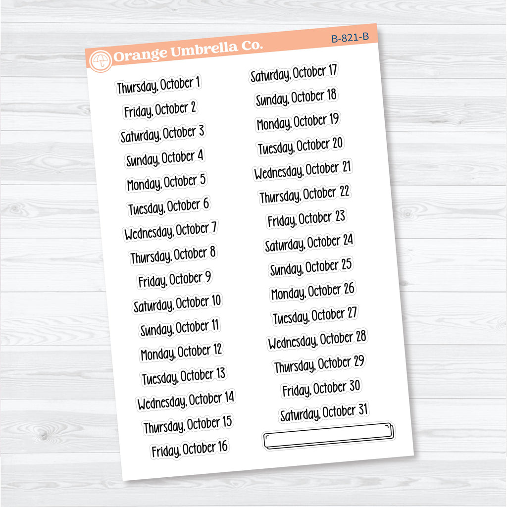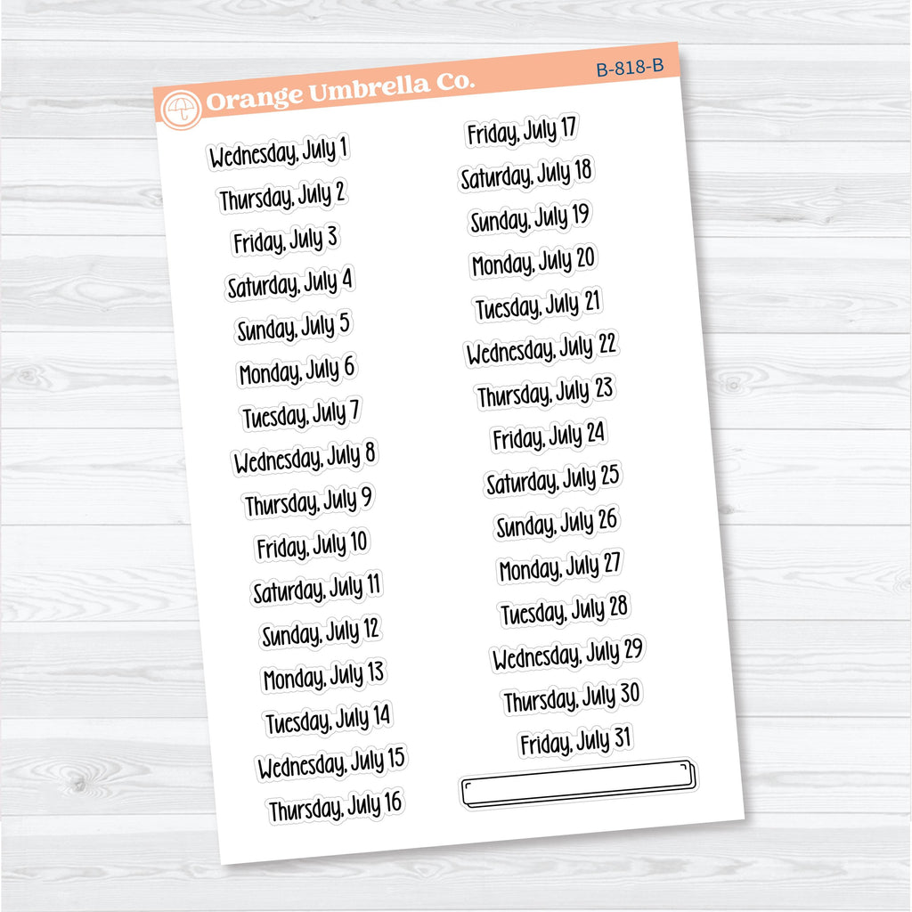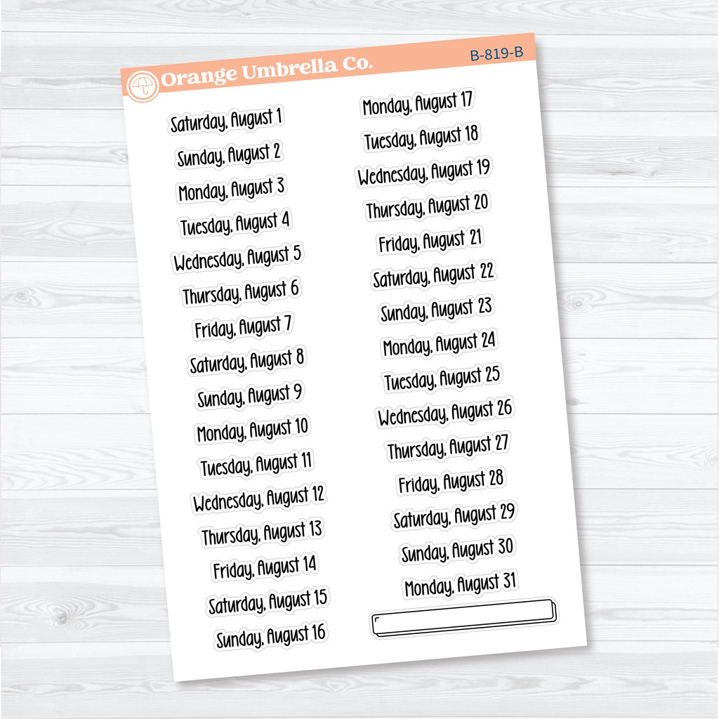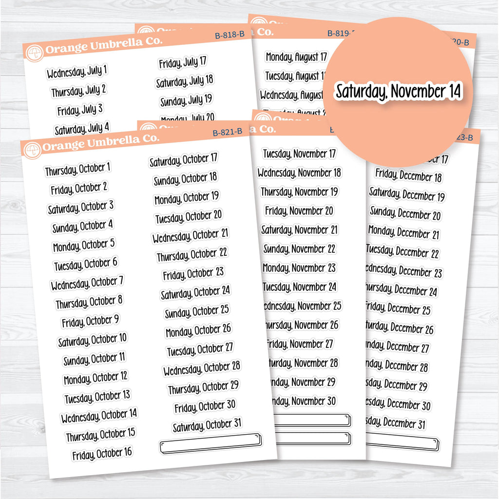 • Individual sticker height: approx. 0.35" (width varies by date)