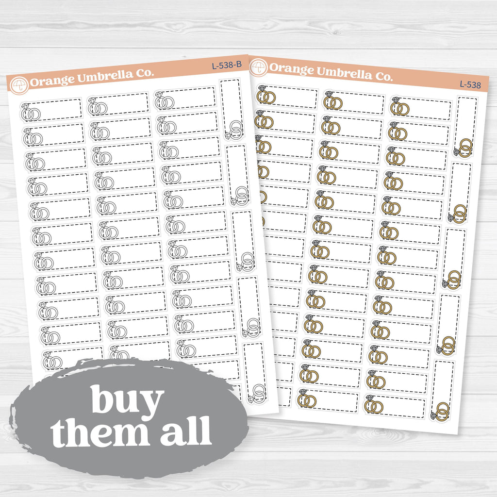 With a clean stitched outline and elegant ring icons, these labels are easy to write on and add a subtle decorative touch while keeping your plans clear and organized.