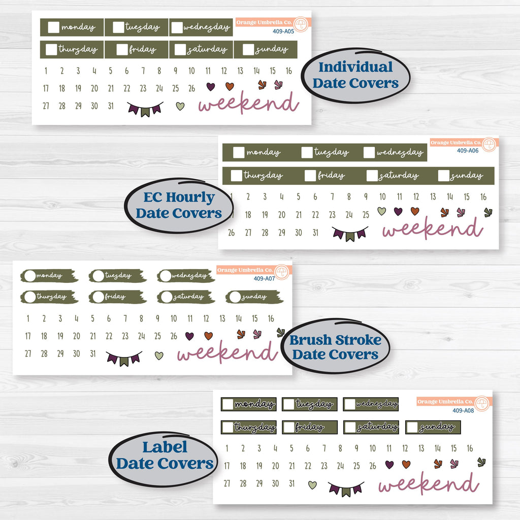 7 individual date covers 1.45β x .42β, 31 date dots .25β, Weekend Banner 2.5β x .75β