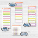 2 top washi 5.15” x .66”, 8 washi dividers 2.5” x .23”, date covers 1.99” x .43”, Bottom box 2.5” x 3.6”, various icons and scripts