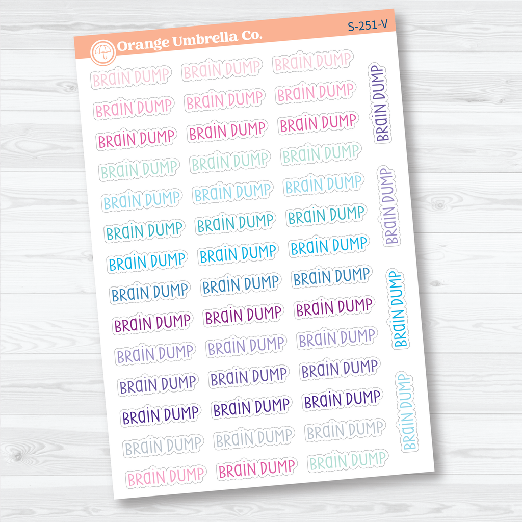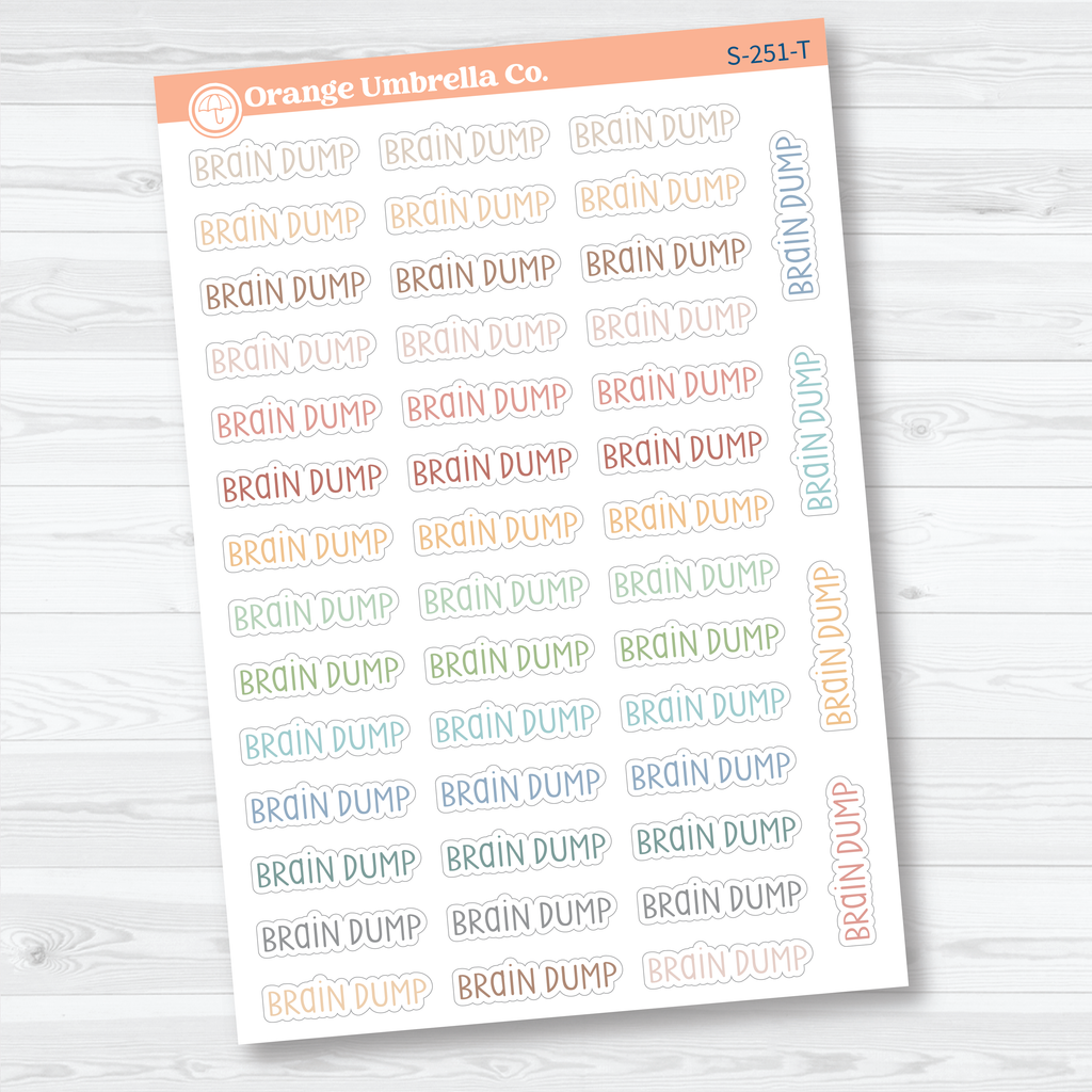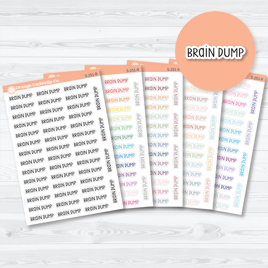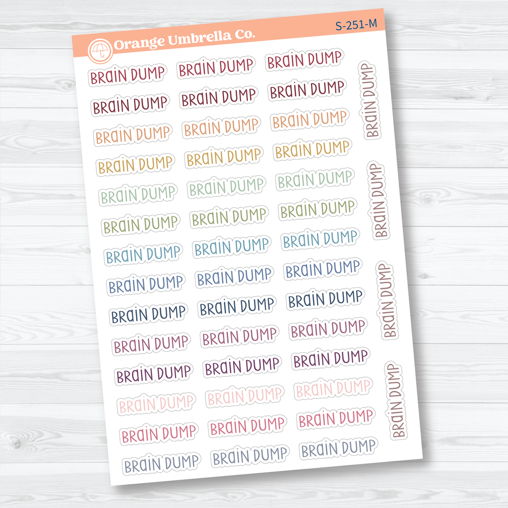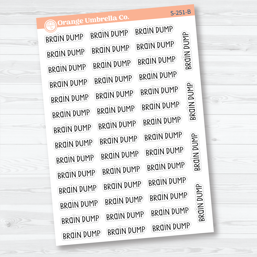 🧠 Capture your thoughts and clear your mind with these “Brain Dump” planner script stickers. Perfect for planners, bullet journals, and productivity layouts, these script stickers help mark sections where you can unload ideas, tasks, or reminders all in one place. The simple handwritten script works beautifully in daily, weekly, or journaling spreads and pairs well with functional planning systems.