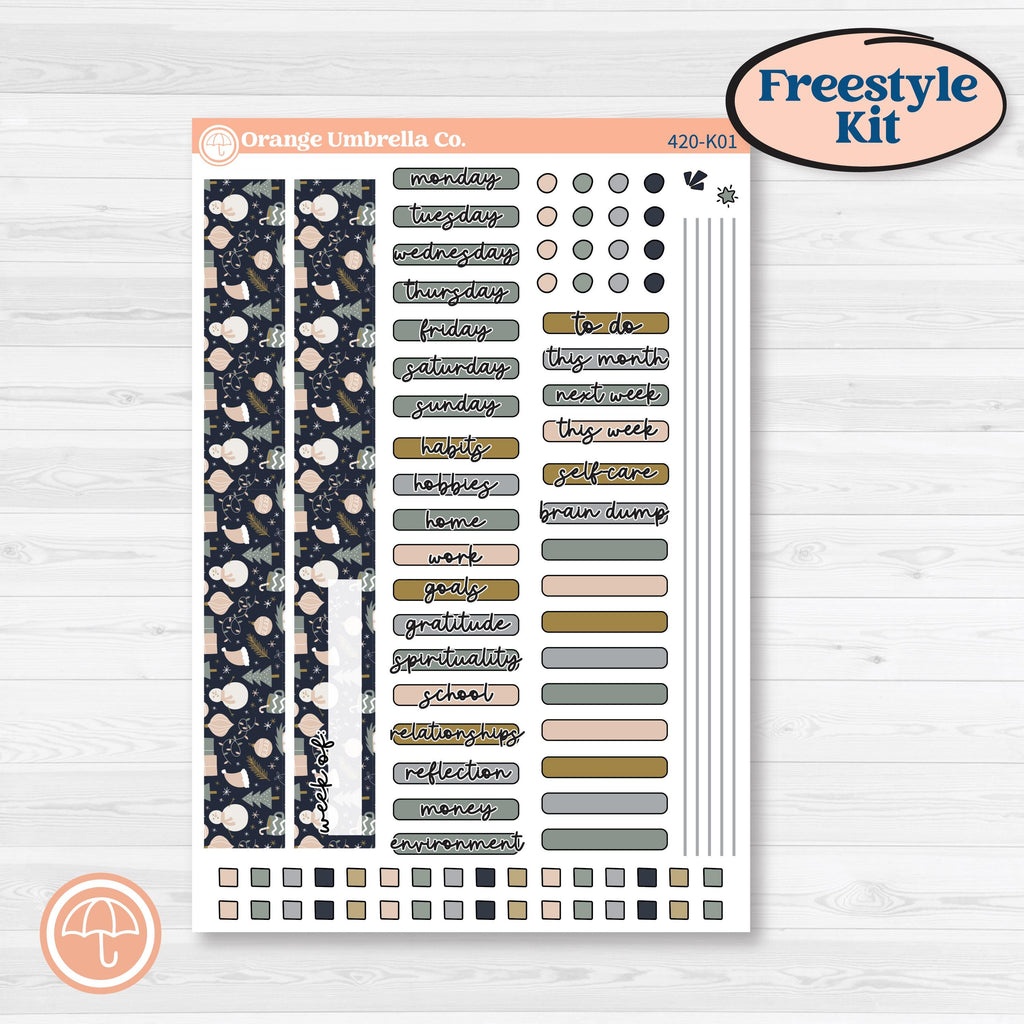 I don't know about you but I think best when things are neatly organized into separate categories. I enjoy tracking my hobbies, and health & wellness, and I wanted a space to keep it all together. If you're seeking a weekly overview or a detailed list--or both-- the freestyle kit could be a great fit for you. All size dimensions are provided below. While these weren't design for any specific planner, I've successfully used them in both 7x9 EC notebooks and my compact A5 carry-all notebooks.