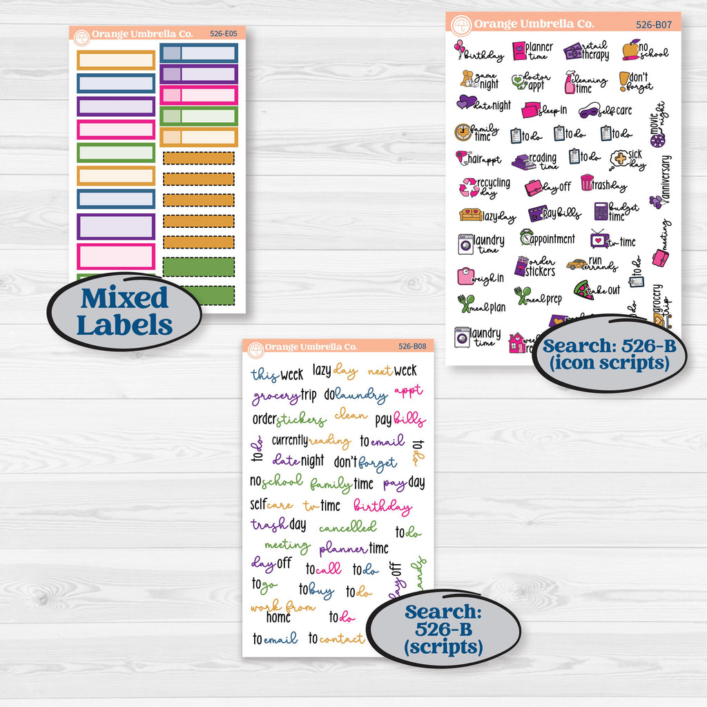 7 Washi Headers 5.25” x .7”, Days of the week max 1”, various checklists & scripts