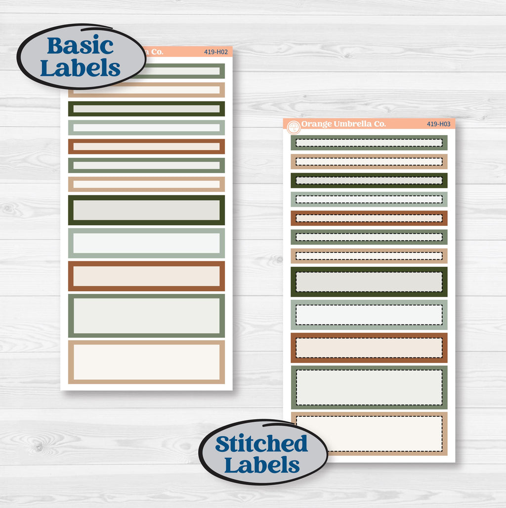 7 one line labels: .28β x 3.15β, 3 two line labels: .57β x 3.15β, 2 three line labels .85β x 3.15β