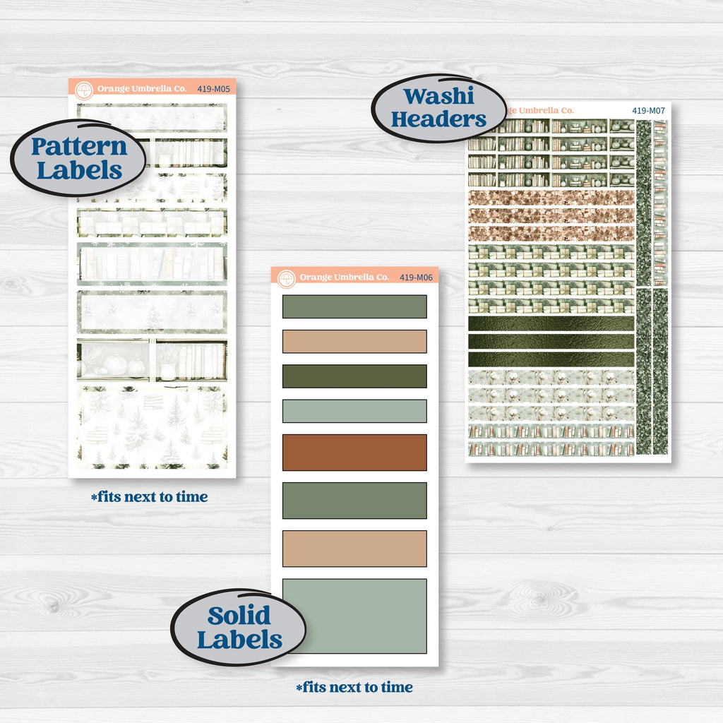 3 Washi Top Headers 6.5β x .75β, 7 date labels, 7 checklist strips, 3 habit trackers, various scripts, icons and labels.
