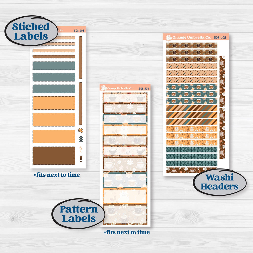 3 washi headers 5.15β x .66β. These are for the Week at a glance page, the page facing the week at a glance and the page after Sunday. When purchased in combination with the Date Covers you will have enough stickers for the top of every page dedicated to the week. 7 checklist strips, 3 habit trackers, 7 day of the week labels, week of, 3 labels and various icons.