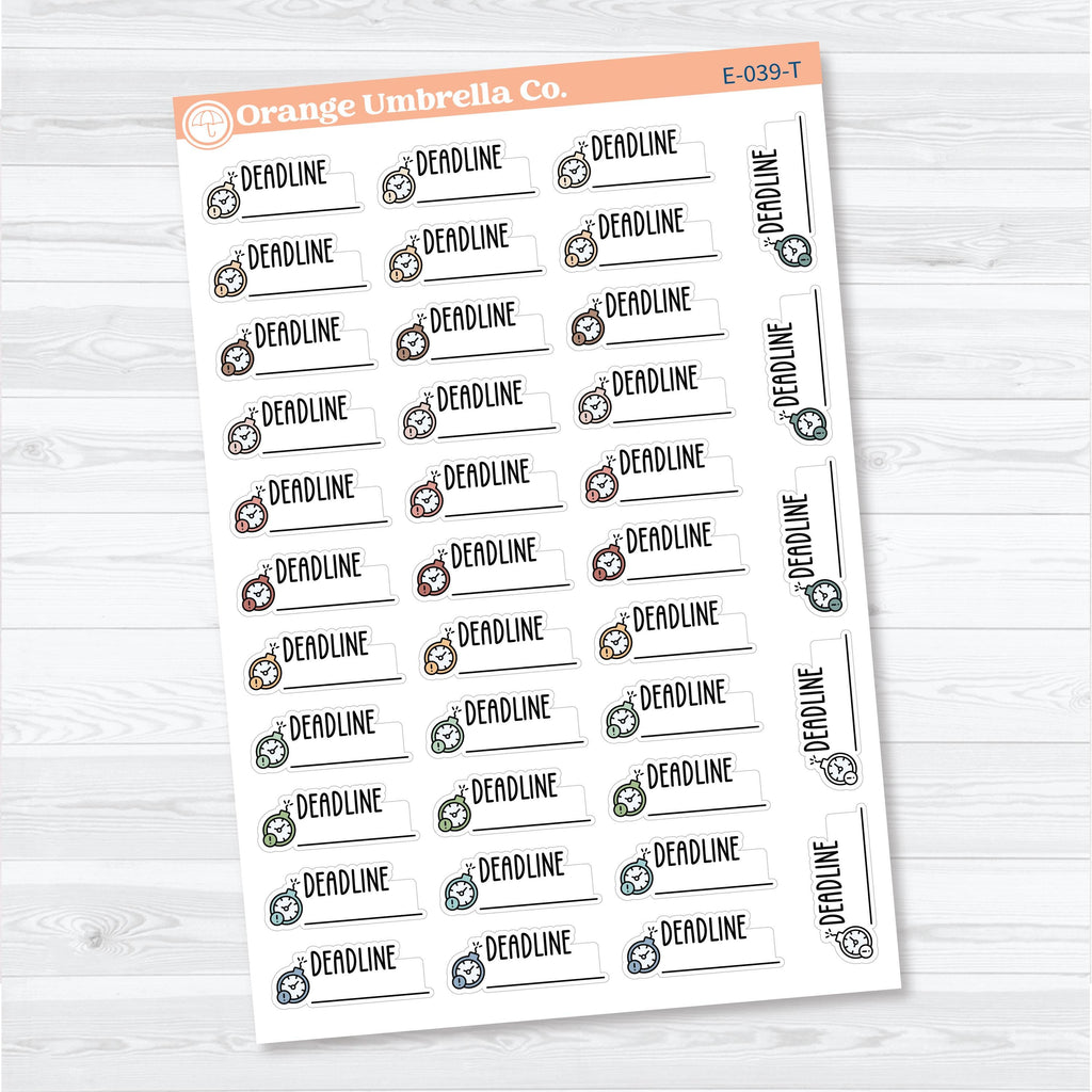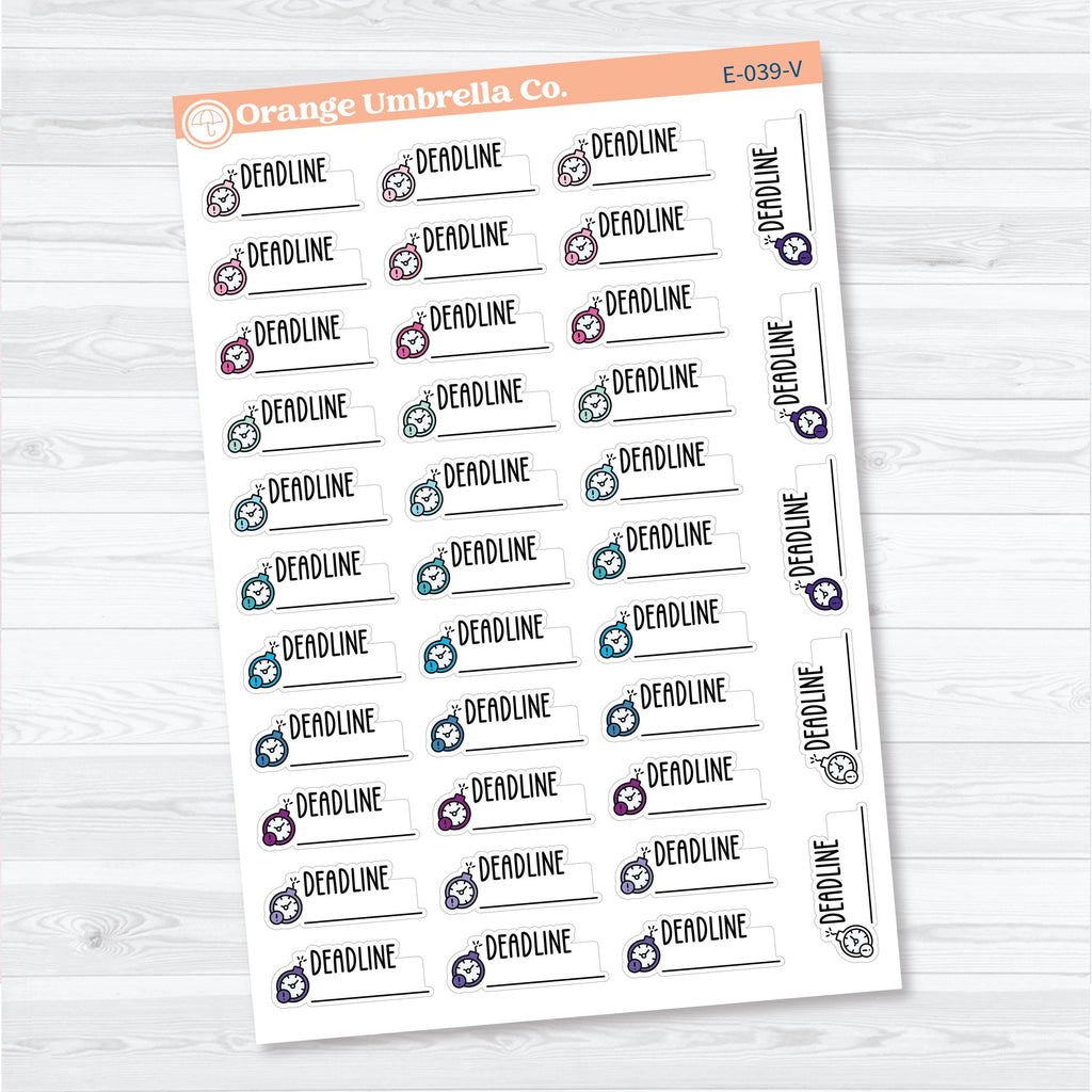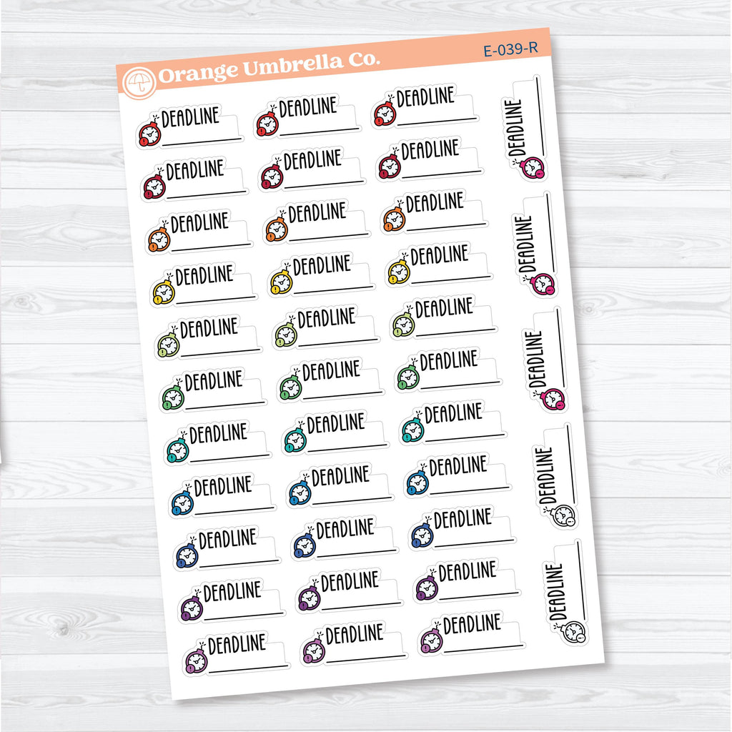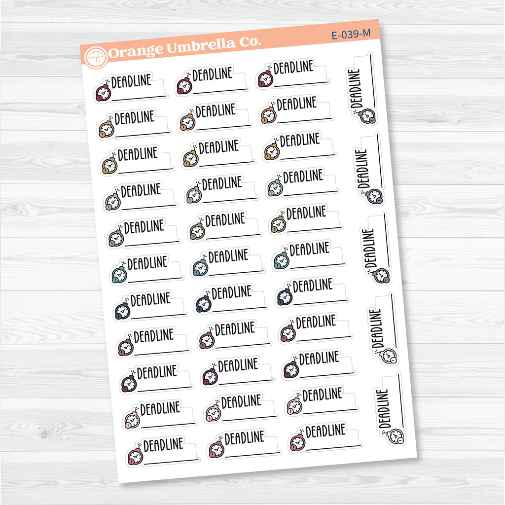 ⏰ Never miss an important due date again with these deadline event label stickers! Designed to clearly call out deadlines, due dates, and time-sensitive tasks, these functional planner stickers are perfect for keeping projects, bills, assignments, and work commitments front and center in your planner or journal.