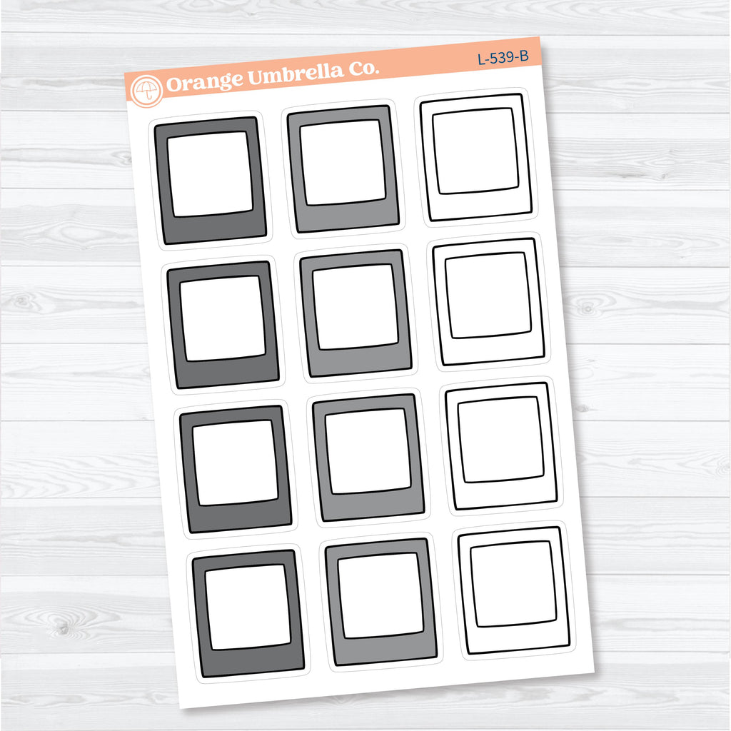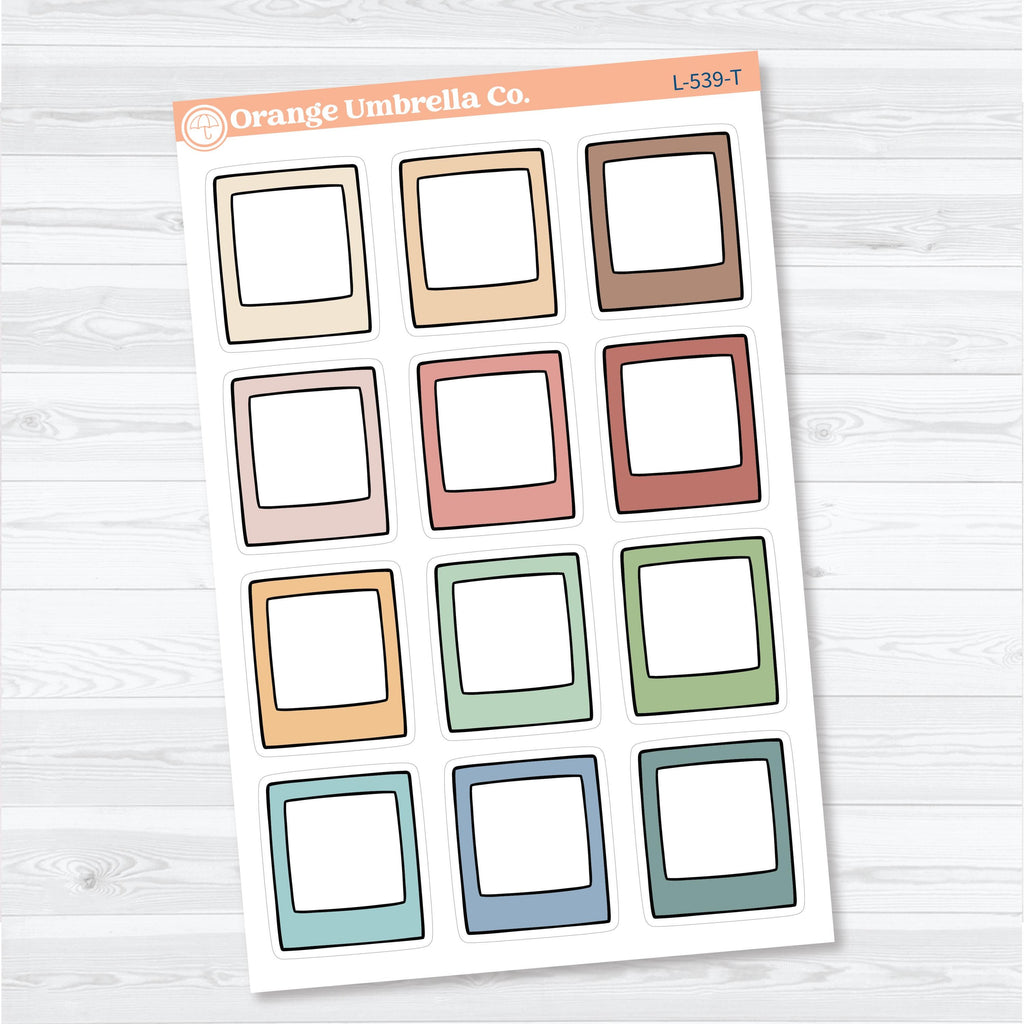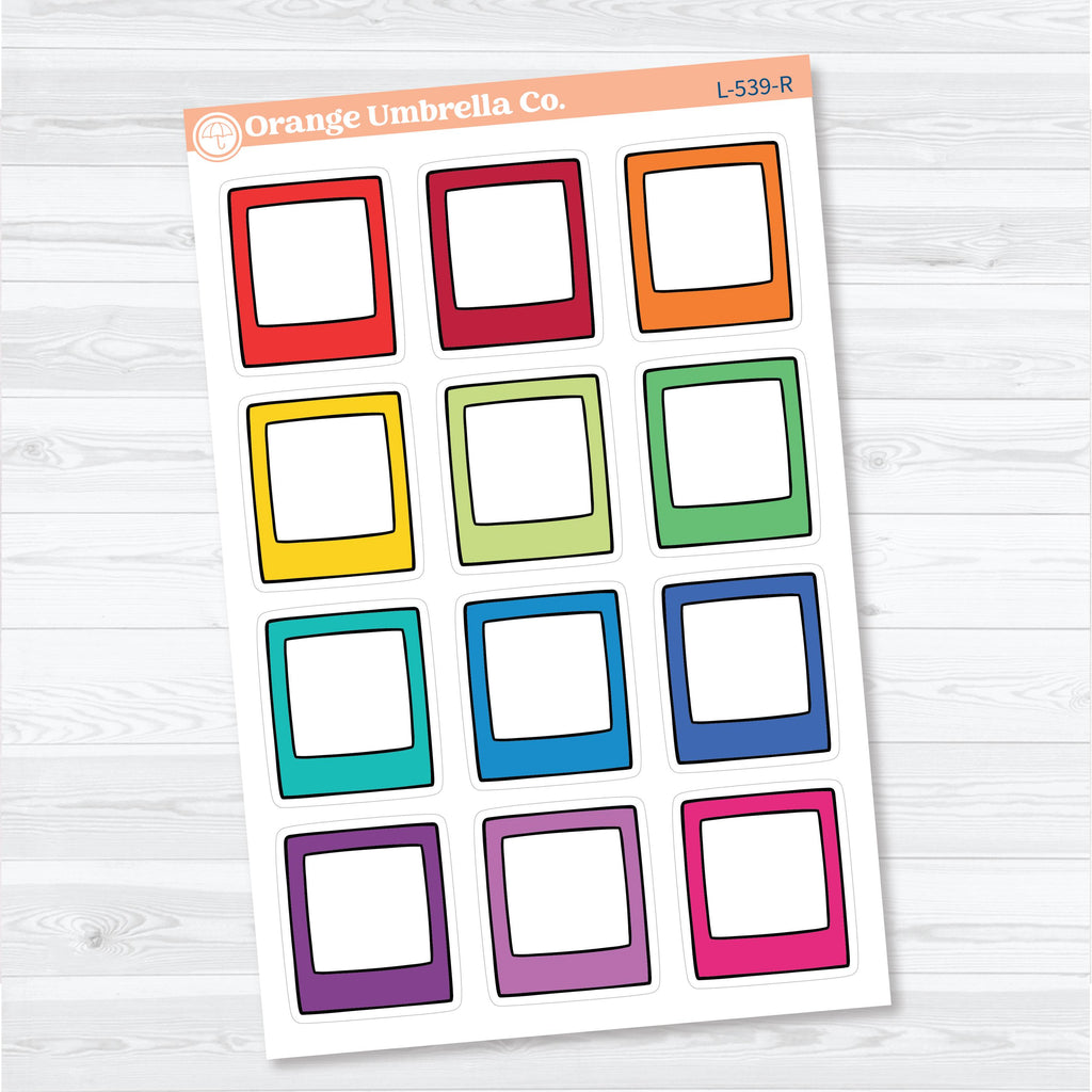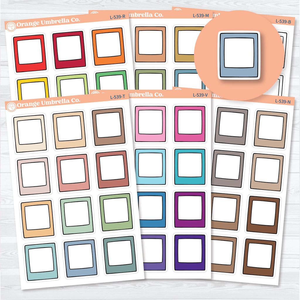 📸 Add a fun, creative touch to your planner or journal with these doodled polaroid-style label stickers! These framed square labels are perfect for memory keeping, journaling, scrapbooking, and decorative planning. Use them to highlight special moments, write notes, or frame tiny photos, quotes, or dates.