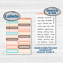 2 headers 1” x 7.4”, 12 labels .34” x 1.8”, various scripts and doo dads, days of the week to make your monthly a Monday or Sunday start.