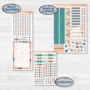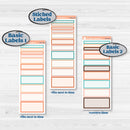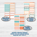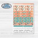3 washi headers 5.15” x .66”. These are for the Week at a glance page, the page facing the week at a glance and the page after Sunday. When purchased in combination with the Date Covers you will have enough stickers for the top of every page dedicated to the week. 7 checklist strips, 3 habit trackers, 7 day of the week labels, week of, 3 labels and various icons.