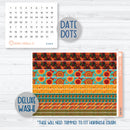 051: Sampler – 5.5” x 8” sheet – 2 washi strips: 5.25” x .51”, 2 thin washi strips: 5.25” x .23”, 2 half box labels: 1.3” x .71”, 3 quarter box labels: 1.3” x .43”, 3 stitched quarter box labels: 1.3” x .43”, 14 scripts, 9 icons, 7 utensil icons, 5 tiny hearts: .24”, 16 dots: .24”