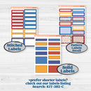 3 washi headers 5.15” x .66”. These are for the Week at a glance page, the page facing the week at a glance and the page after Sunday. When purchased in combination with the Date Covers you will have enough stickers for the top of every page dedicated to the week. 7 checklist strips, 3 habit trackers, 7 day of the week labels, week of, 3 labels and various icons.