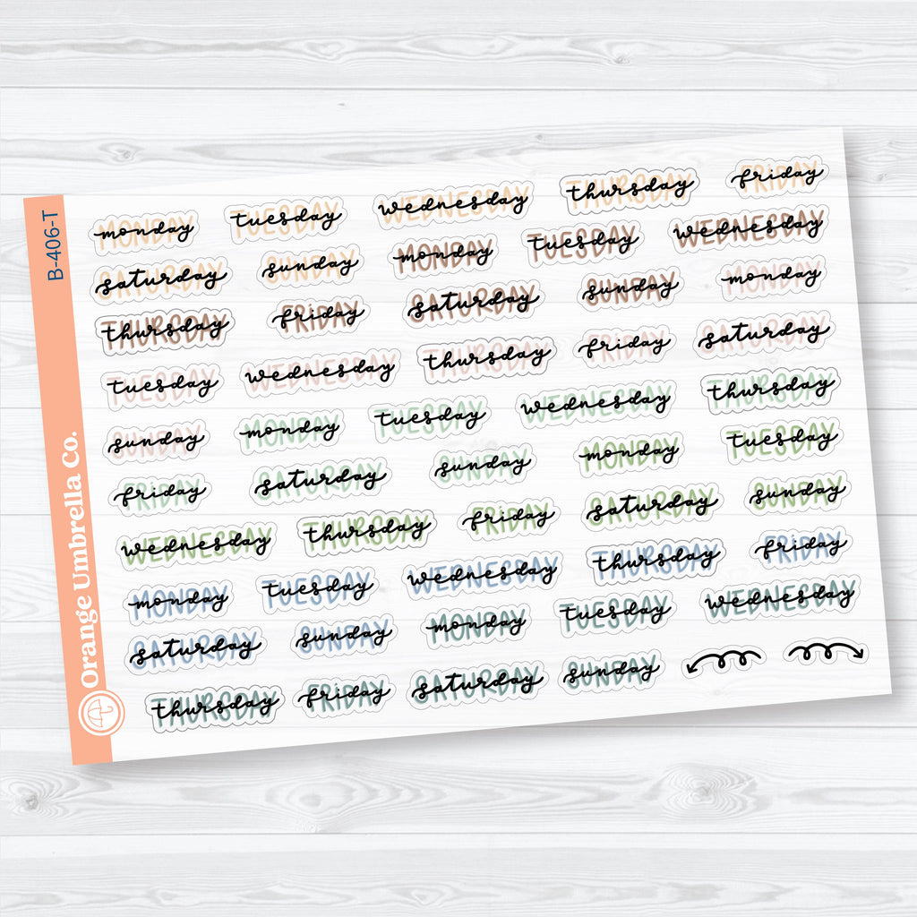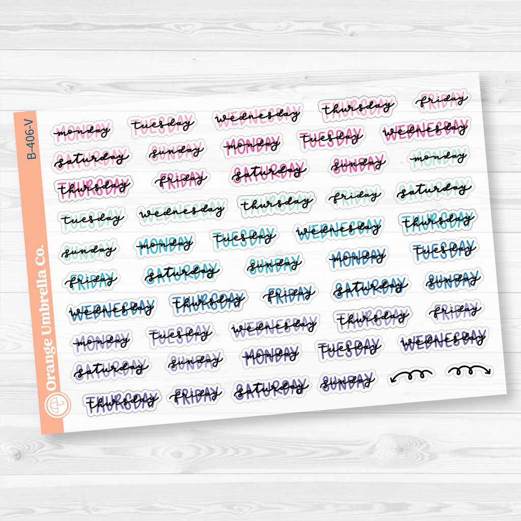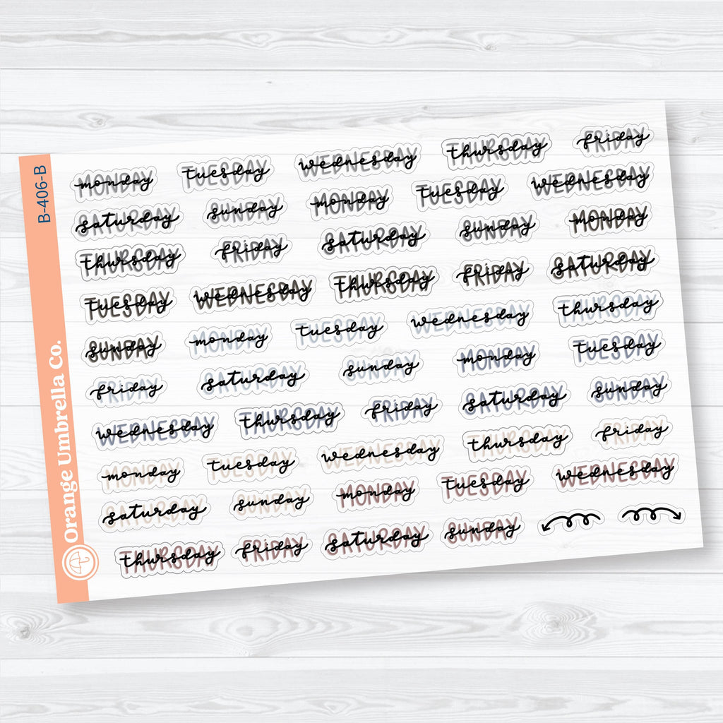 ✨ Keep your weekly plans clear and cohesive with these hand doodled layered days of the week stickers, now available on clear matte sticker paper. The playful script style adds personality without overpowering your spread, making these perfect for planners, journals, and layered layouts where you want structure with a soft, hand-drawn look.