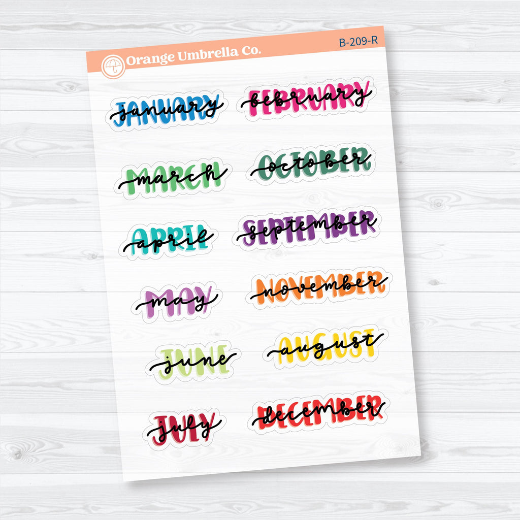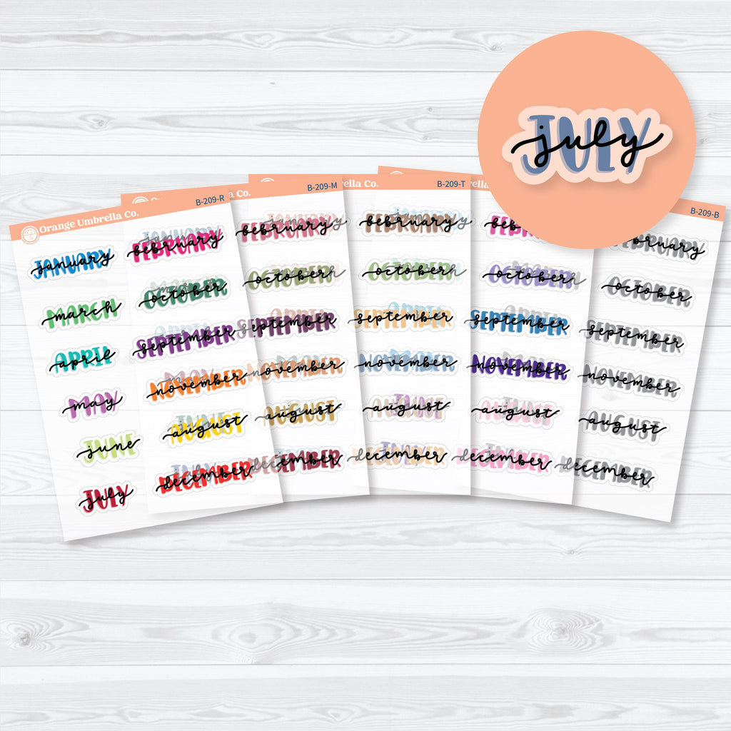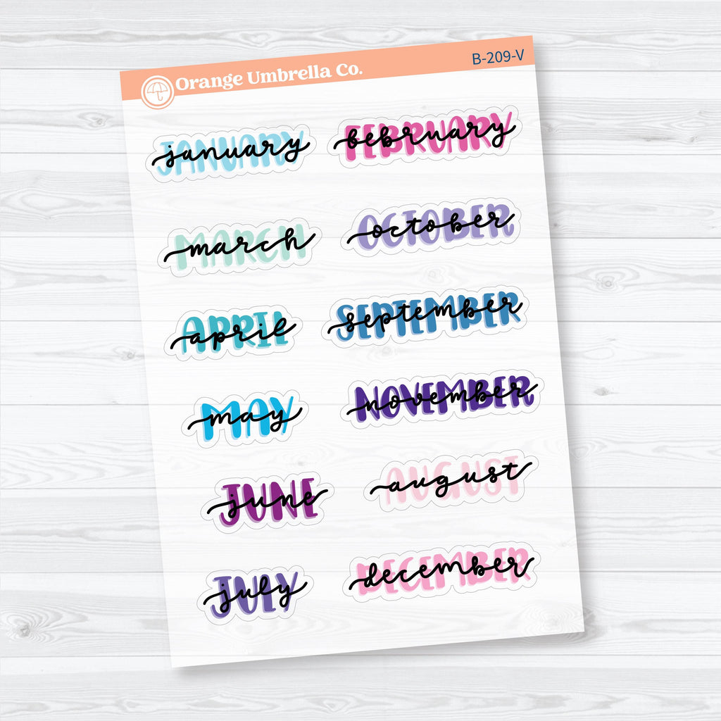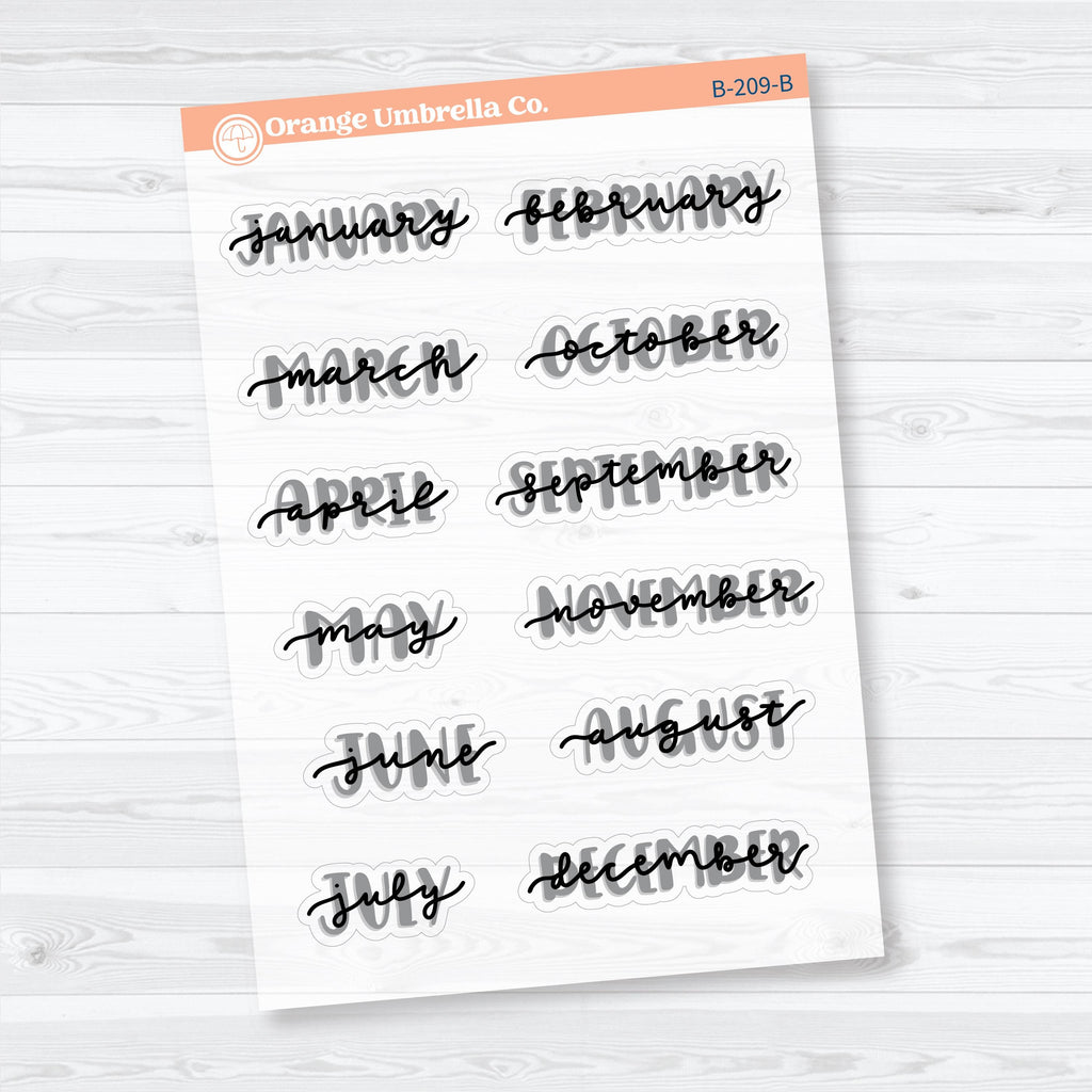🗓️ Add a fun hand-drawn touch to your planner with these medium hand doodled month planner stickers, now available in a clear matte (transparent) finish. Each script-style month label features a playful doodled underline and soft highlight effect that blends smoothly into your planner pages. These are perfect for marking monthly sections, dashboards, or dividers in planners and journals while maintaining a clean, layered look.