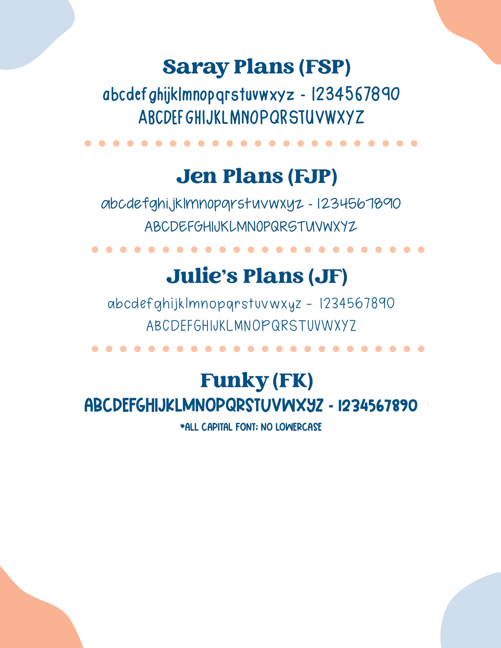 • Entries will be copied and pasted exactly as left. Please note that several fonts do not utilize capital letters (see notation on available font charts).