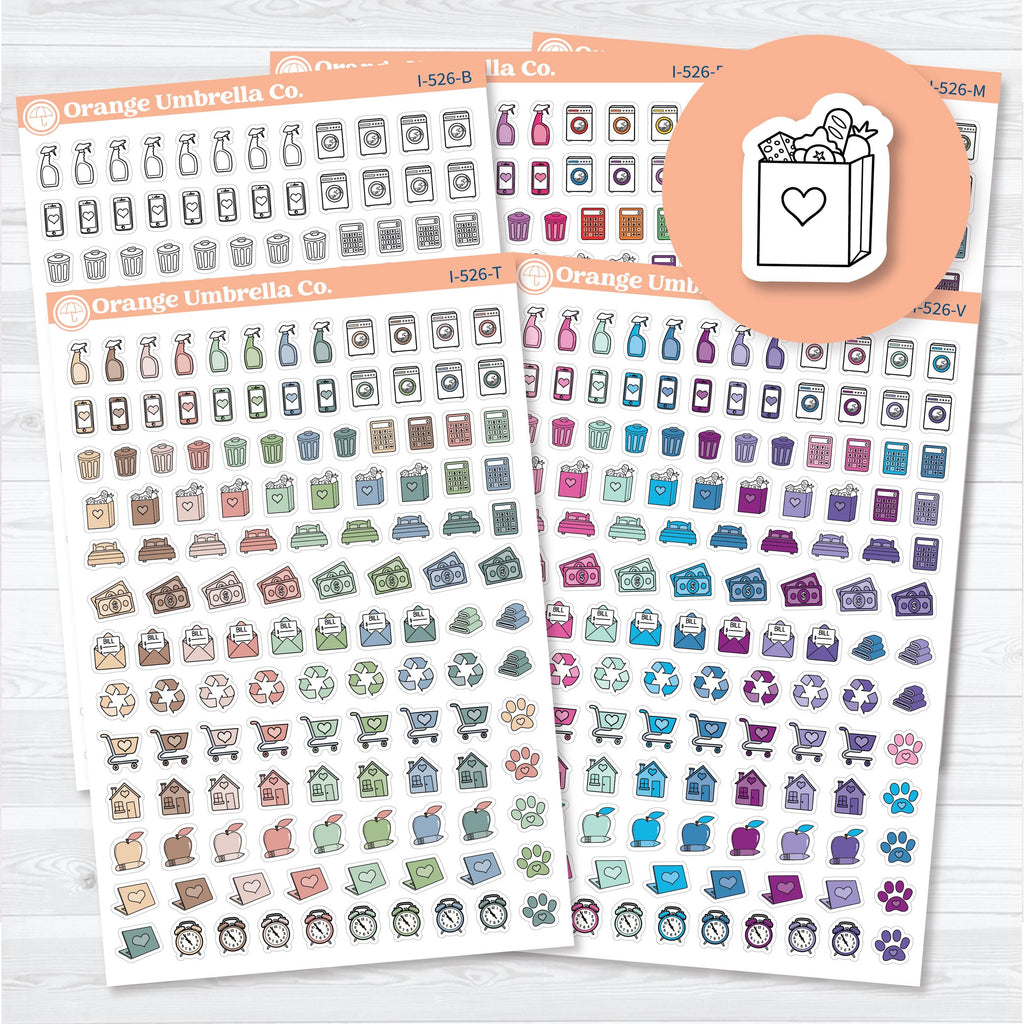 🏡 Keep everyday life organized with this home, chores, appointments, and family icon sampler sticker sheet! This functional icon collection is designed to help you track routines, errands, bills, cleaning, appointments, shopping, pets, and daily home life in a simple and visual way.