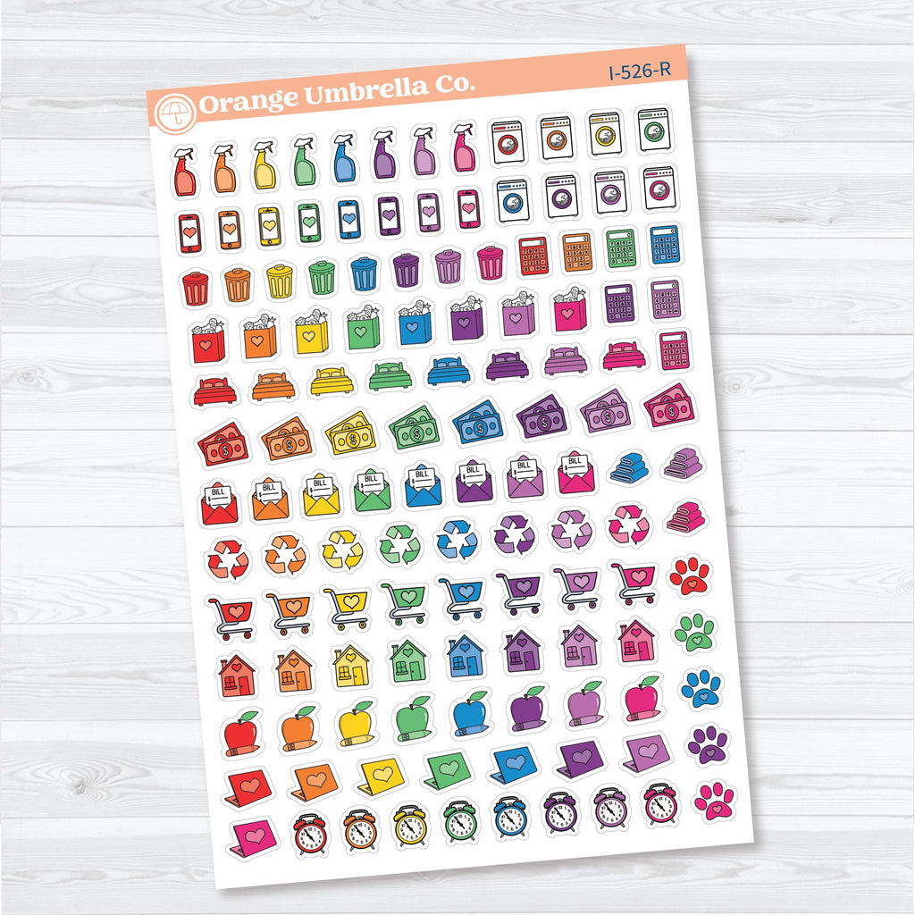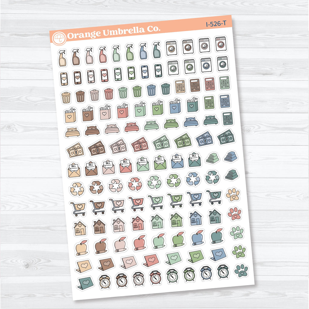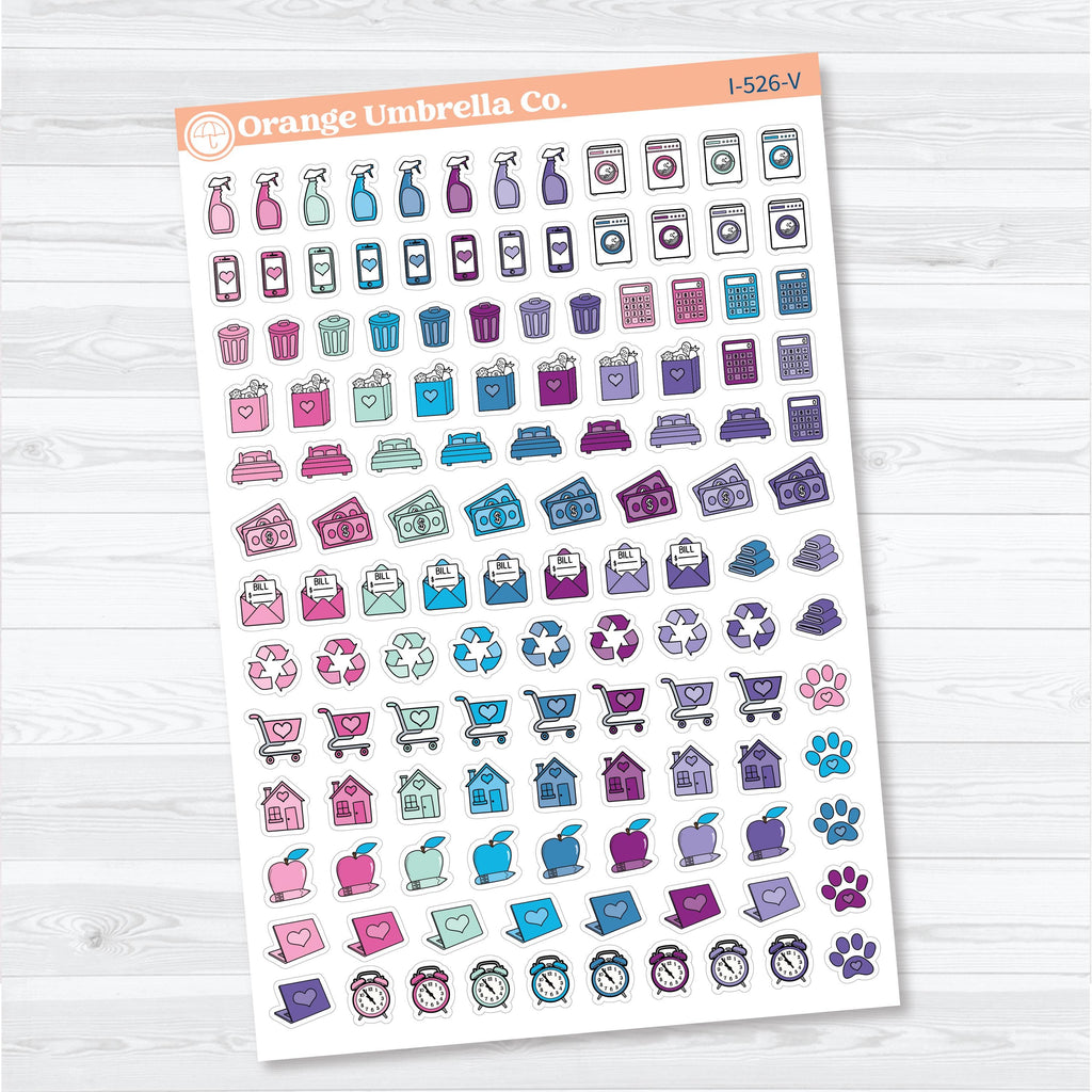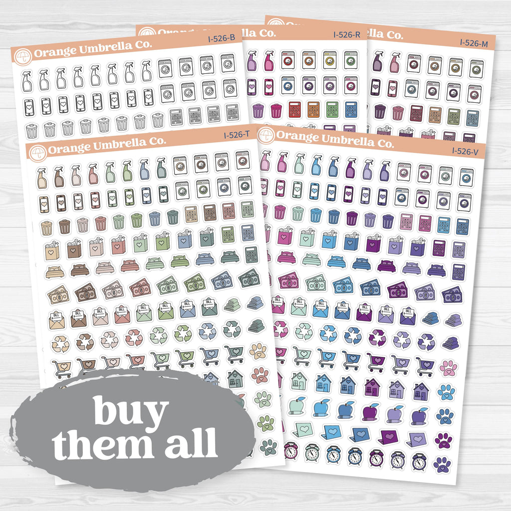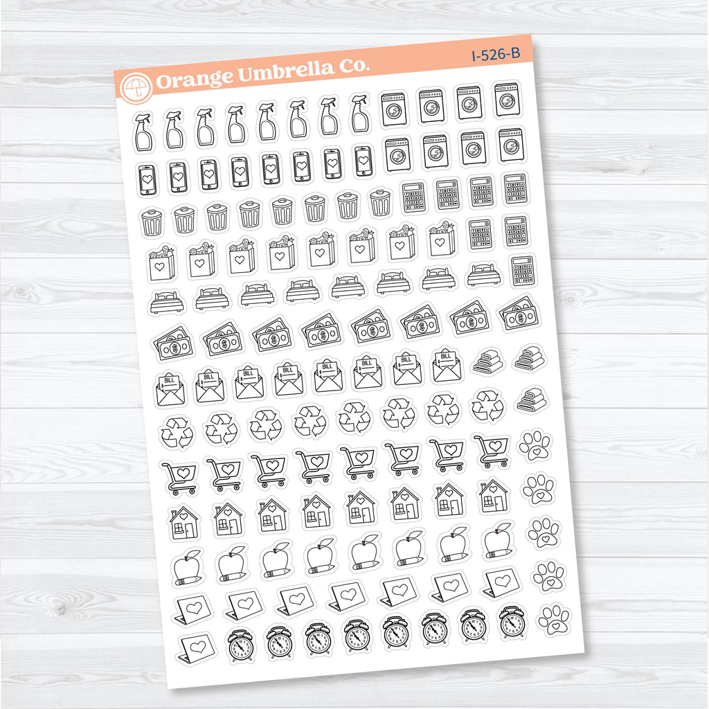 This sampler-style sheet gives you a wide variety of practical icons all in one place, making it easy to plan your weeks, manage household tasks, and keep your schedule running smoothly without flipping between multiple sheets.