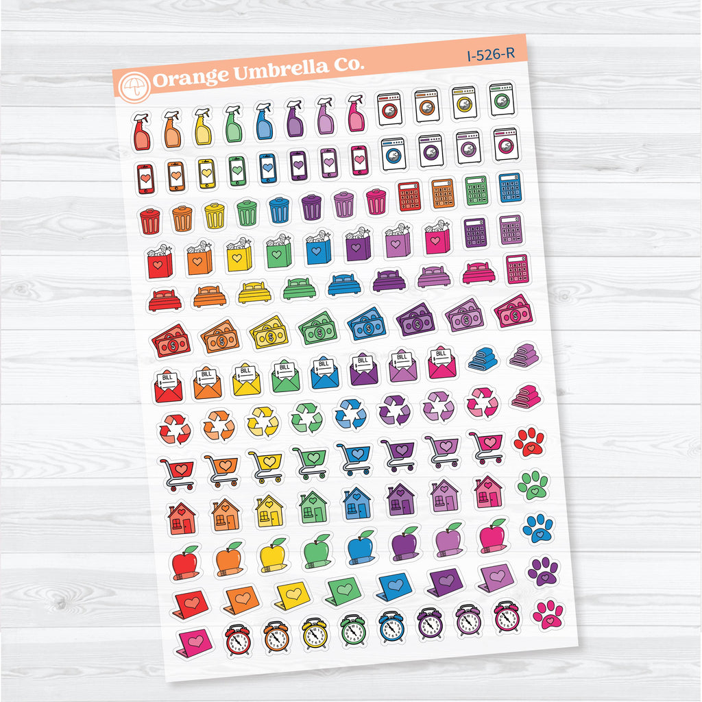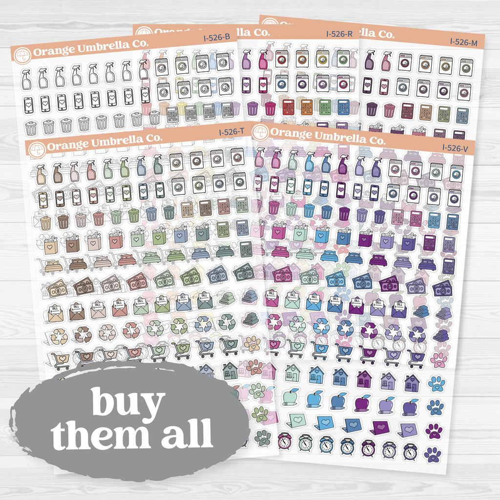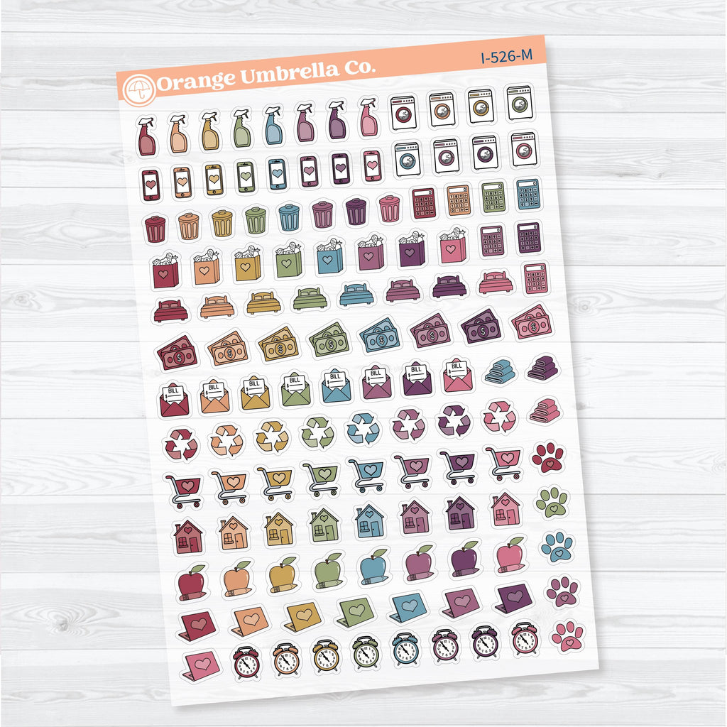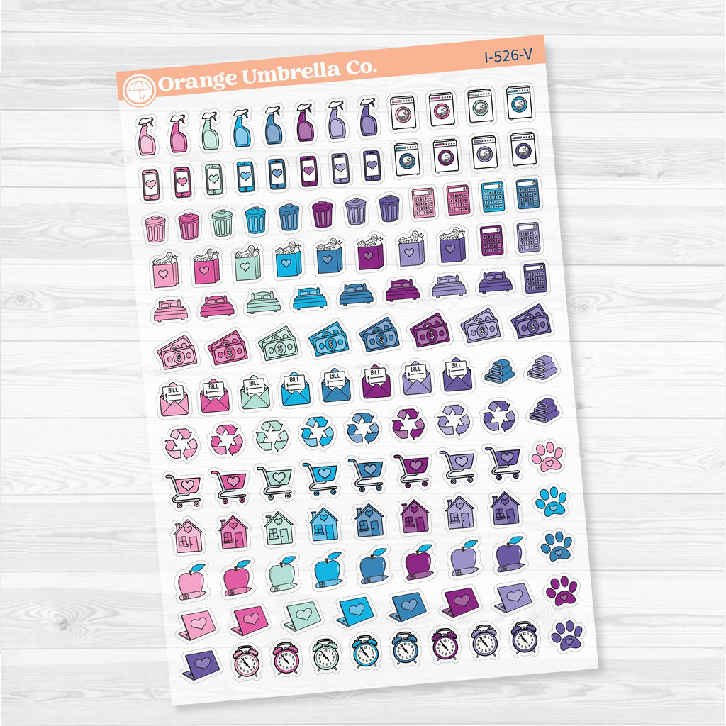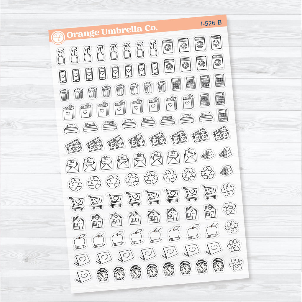 This sampler-style sheet gives you a wide variety of practical icons all in one place, making it easy to plan your weeks, manage household tasks, and keep your schedule running smoothly without flipping between multiple sheets.