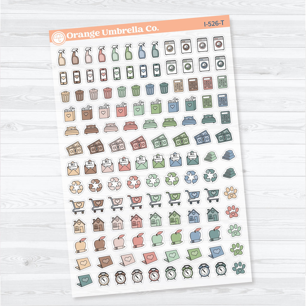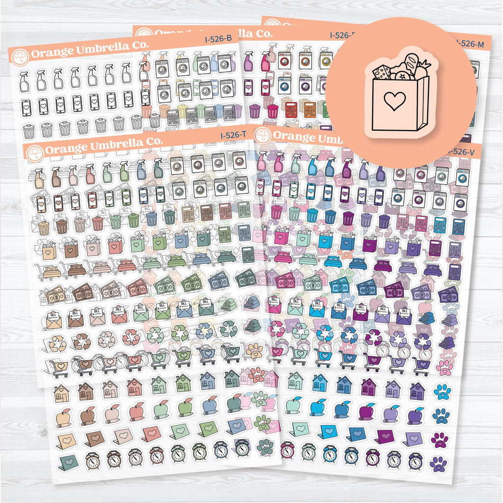 🏡 Keep everyday life organized with this home, chores, appointments, and family icon sampler sticker sheet! This functional icon collection is designed to help you track routines, errands, bills, cleaning, appointments, shopping, pets, and daily home life in a simple and visual way.