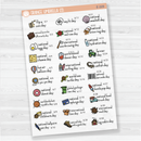 • 5.5" x 8" sheet - each individual sticker size varies up to 1.5" wide - 31 Stickers/sheet