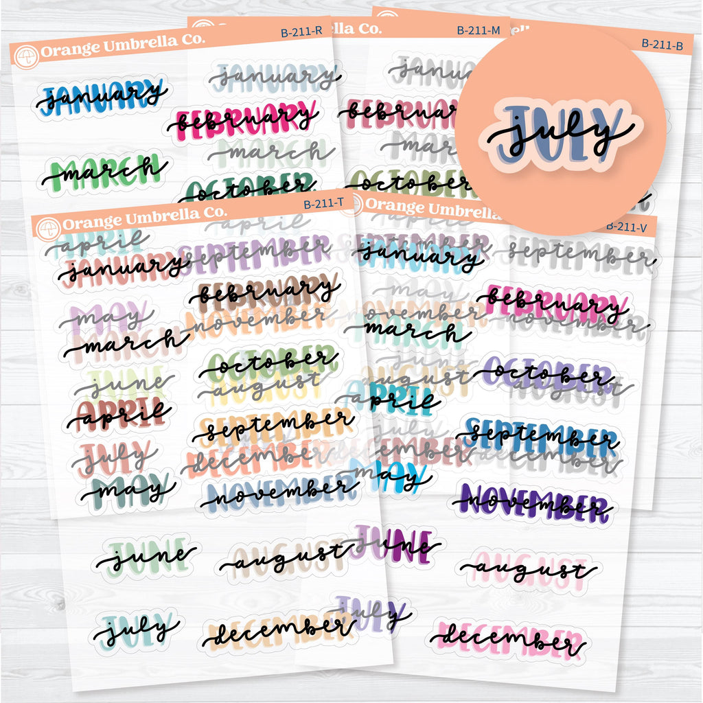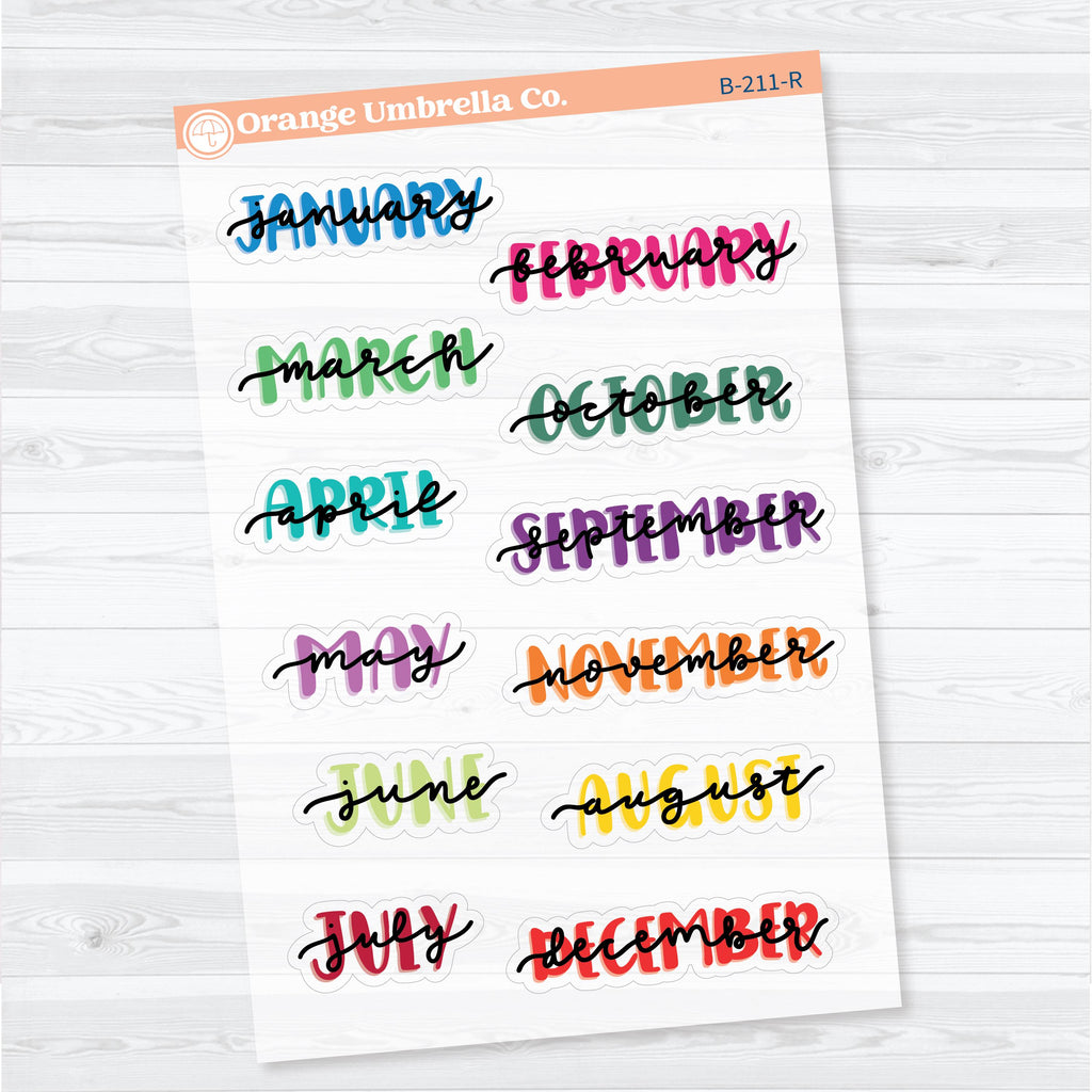 • Sticker height: approx. 0.7" tall (width varies by month)