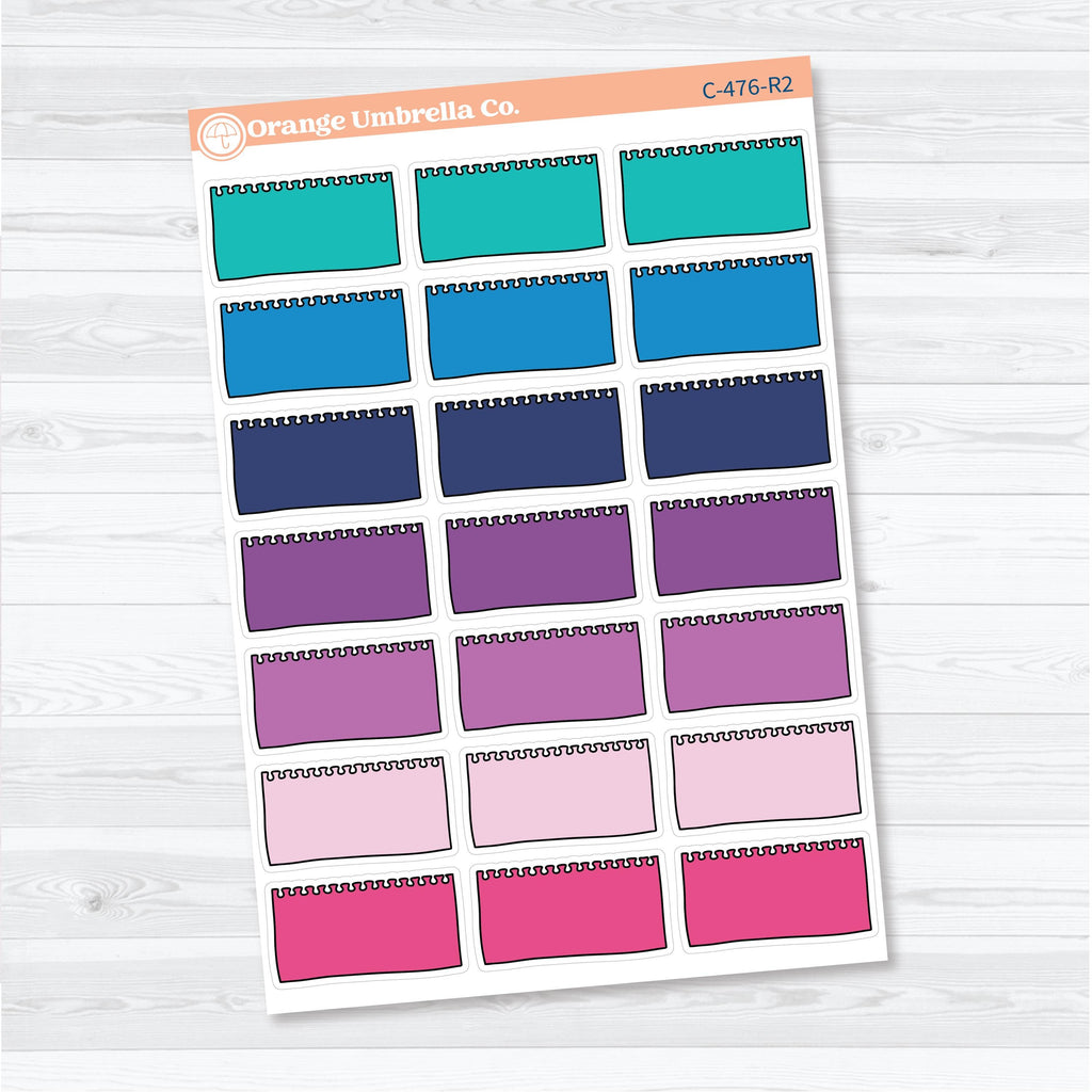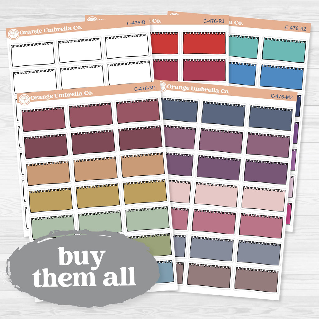 Oversized torn notebook style labels designed for layering, memory keeping, and creative journaling spreads. These large ripped-edge stickers are the same style used in our journaling kits and are perfect for creating bold section headers, covering larger spaces, or building focal points in your layout.