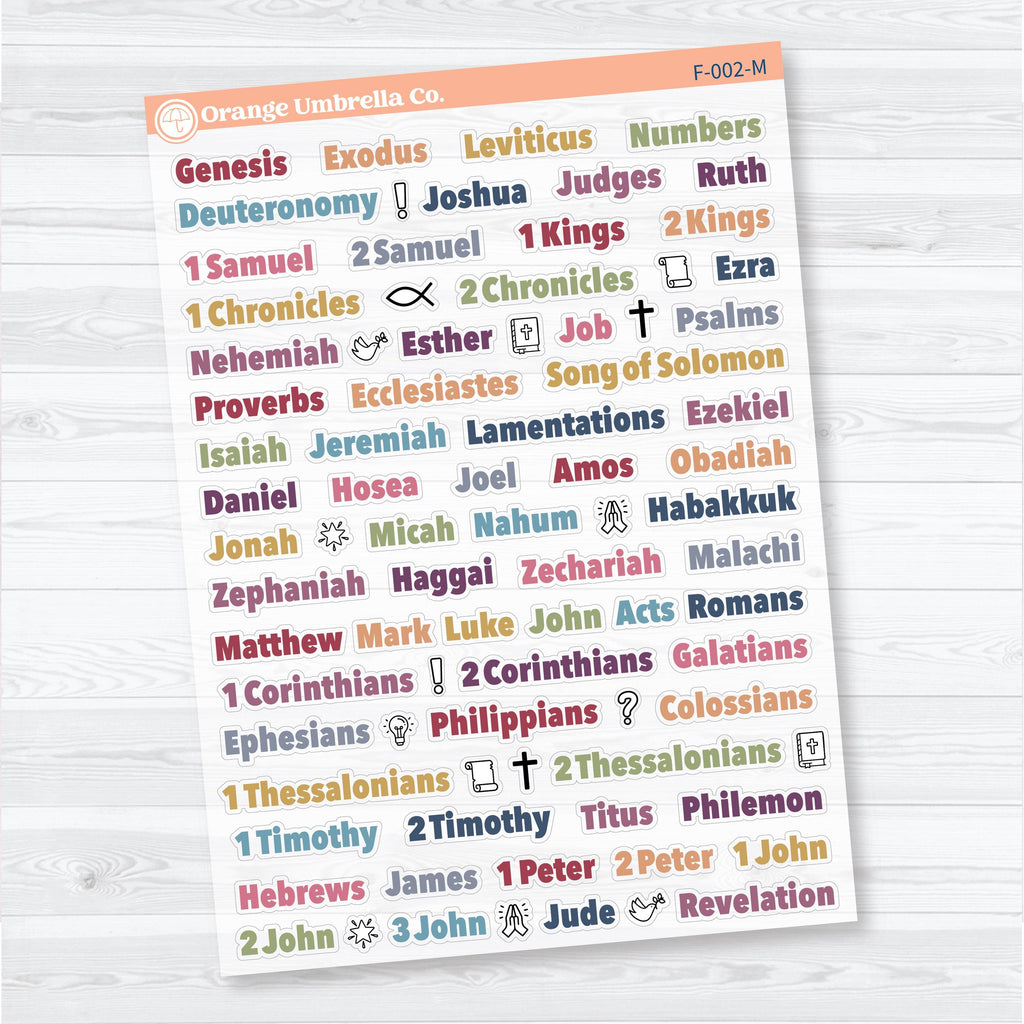 🌿 Add a transparent touch to your Bible study pages! These clear matte Books of the Bible stickers are perfect for labeling faith journals, study notes, and devotion pages. Includes all 66 books and matching icons.