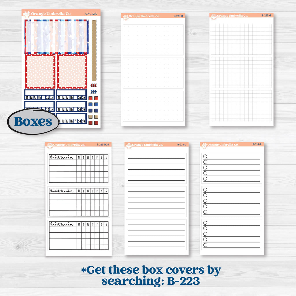 πΊπΈ This Memorial Day planner kit blends classic red, white, and blue tones with rustic Americana textures.