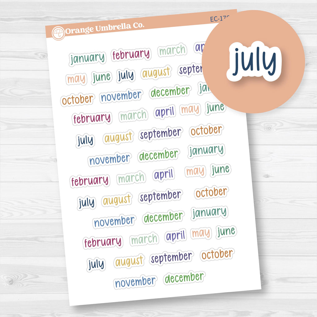 • 4"x6" Sheet - each individual sticker varies; varies; approximately .3" tall; max width 1" - 36 stickers per sheet, 3 full sets of months