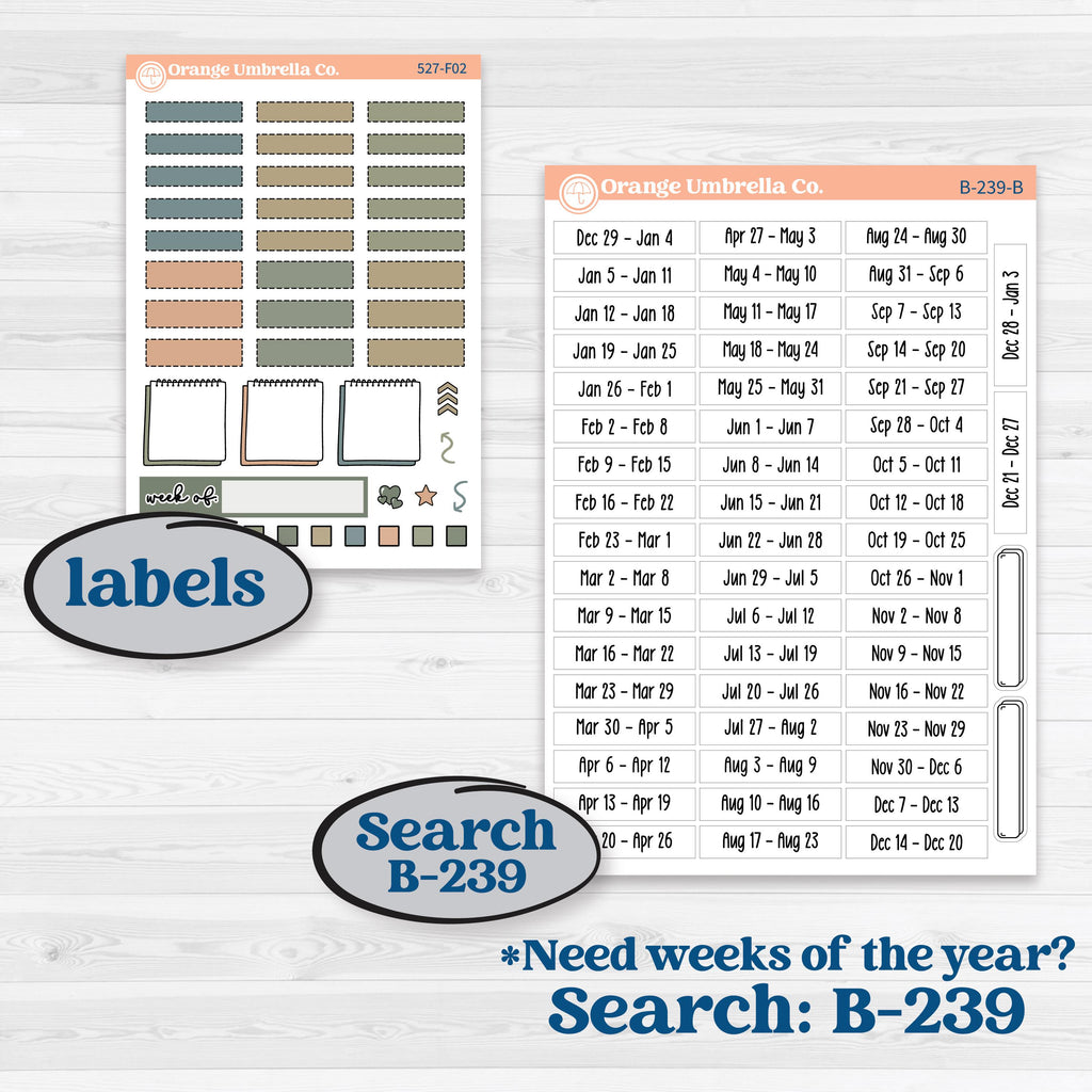 π Functional labels and decorative full boxes allow you to build cohesive spreads while keeping your planning practical.