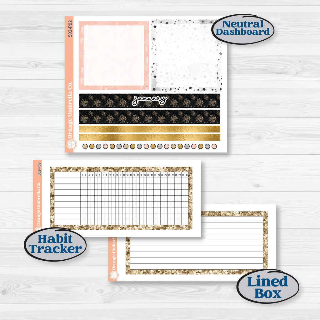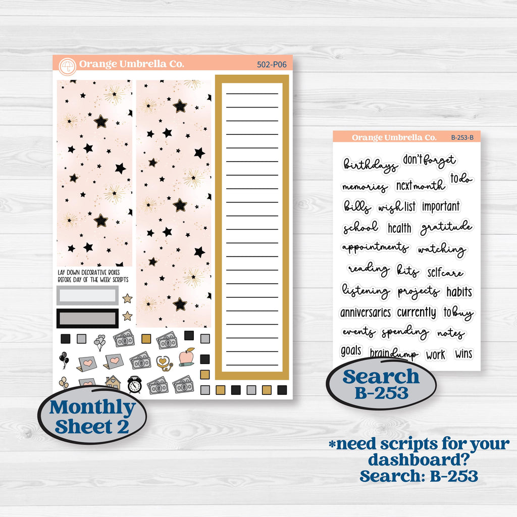 P06: Monthly Sheet 2: Sheet Size: 4.8” x 7” / Sidebar: 1.4” x 6.1”, decorative cover boxes: 1.24” x 1.47” (seamless pattern), 4 decorative cover boxes: 1.24" x 1.47" (seamless pattern), various labels, icons, and individual checkboxes ($3.19)