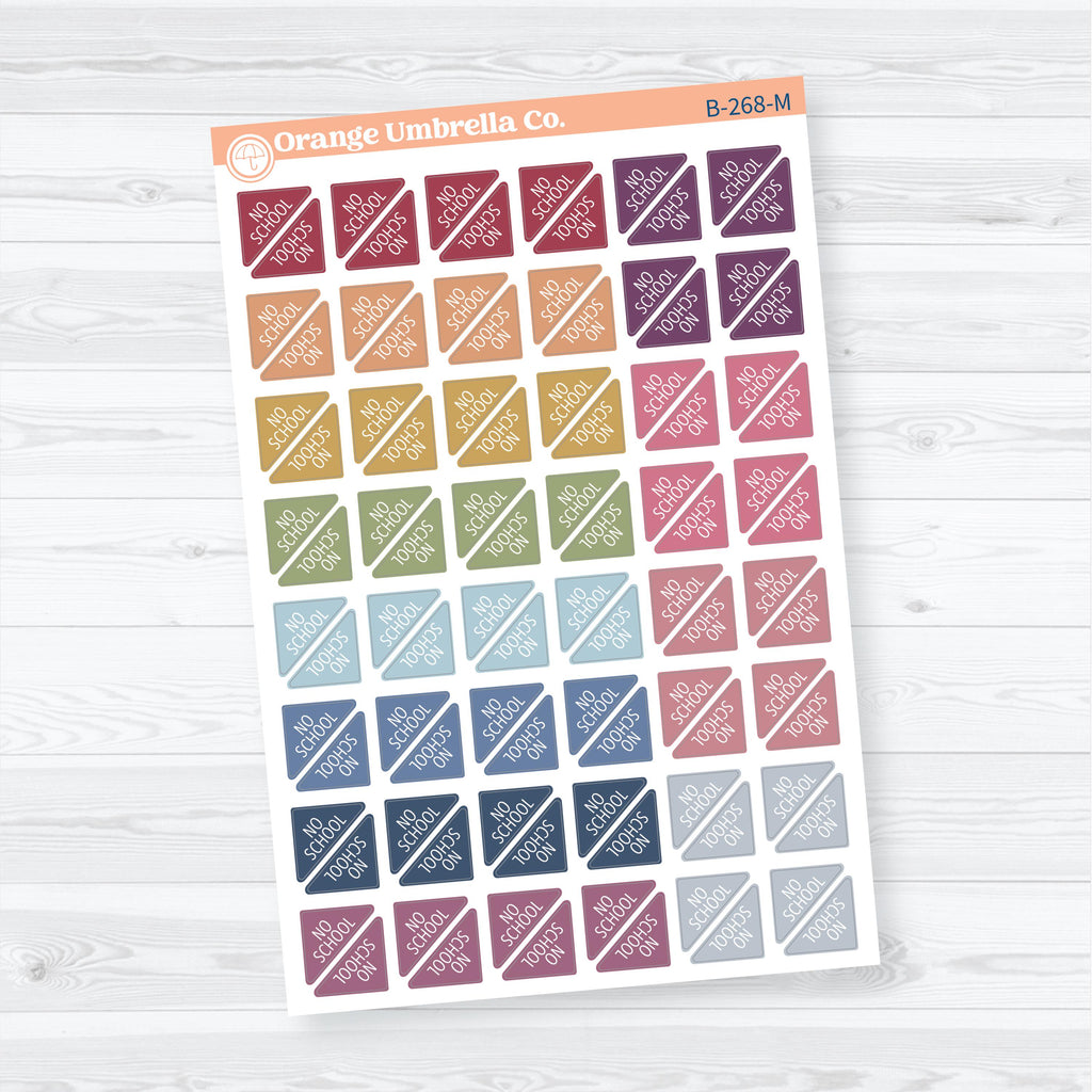 🎒 Clearly mark school breaks and days off with these no school mini corner flag stickers! Designed to tuck neatly into the corners of planner boxes, these functional planner stickers are perfect for highlighting no-school days, holidays, teacher in-service days, and school closures without taking up valuable writing space.
