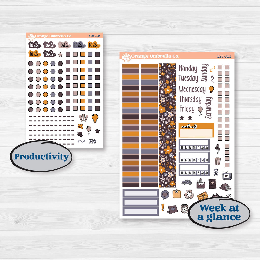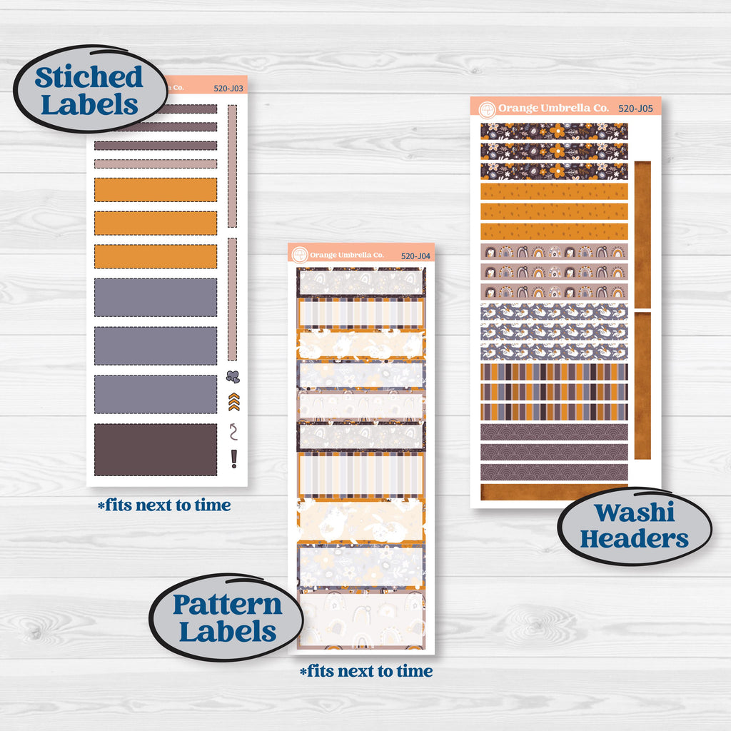 3 washi headers 5.15β x .66β. These are for the Week at a glance page, the page facing the week at a glance and the page after Sunday. When purchased in combination with the Date Covers you will have enough stickers for the top of every page dedicated to the week. 7 checklist strips, 3 habit trackers, 7 day of the week labels, week of, 3 labels and various icons.