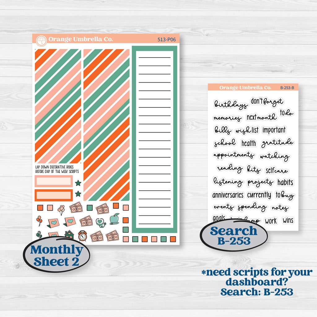 P06: Monthly Sheet 2: Sheet Size: 4.8β x 7β / Sidebar: 1.4β x 6.1β, decorative cover boxes: 1.24β x 1.47β (seamless pattern), 4 decorative cover boxes: 1.24" x 1.47" (seamless pattern), various labels, icons, and individual checkboxes ($3.19)