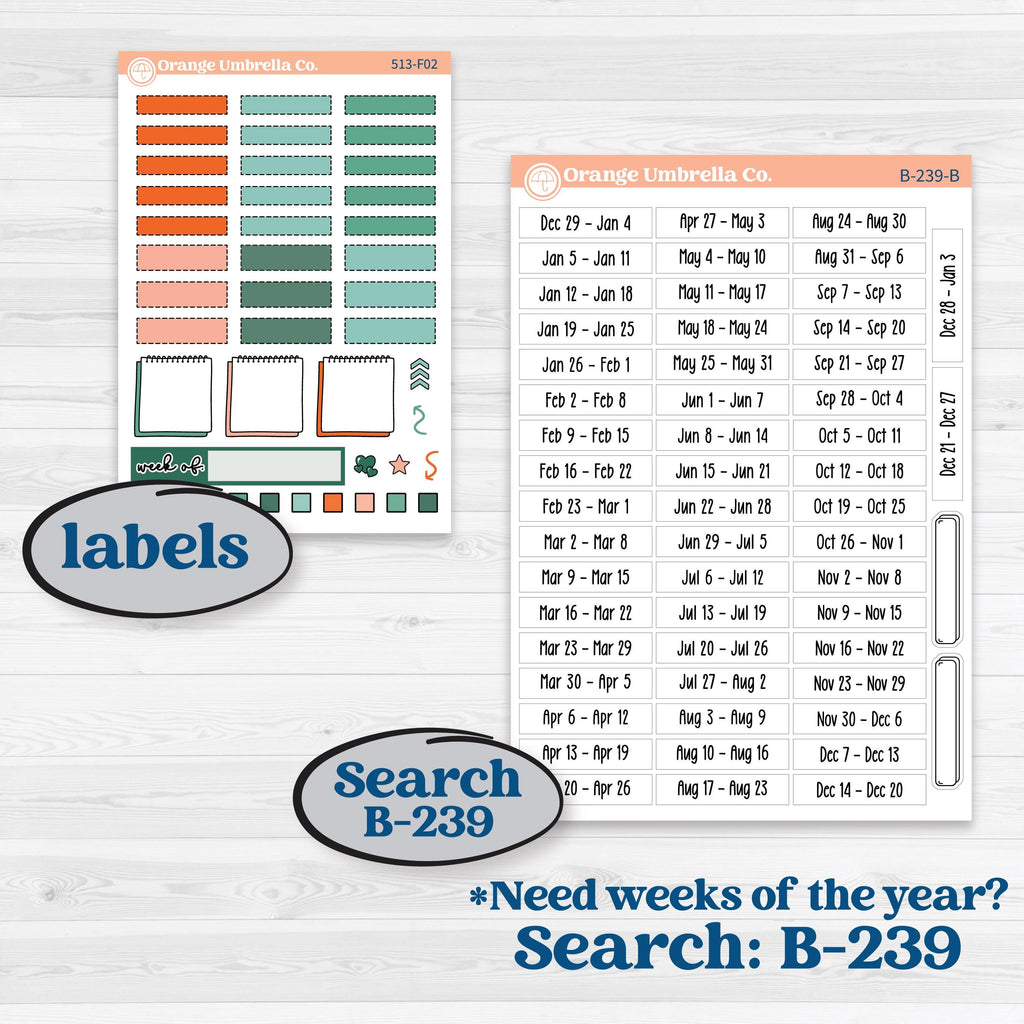 Top washi 3.2β x .35β, bottom washi 3.2β x .78β, date covers 5.8β x .3β, box strips 5.8β x .83β, 3 full boxes .83β x .83β, various labels .94β wide, scripts and icons in various sizes