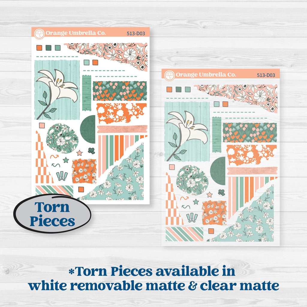 Two large torn washi 6.4β x .77β, 7 small labels 1.4β x .38β, 3 large labels 1.4β x .57β, days of the week 1.28β x .36β, torn corner 2.9β x .93β, various doo dads