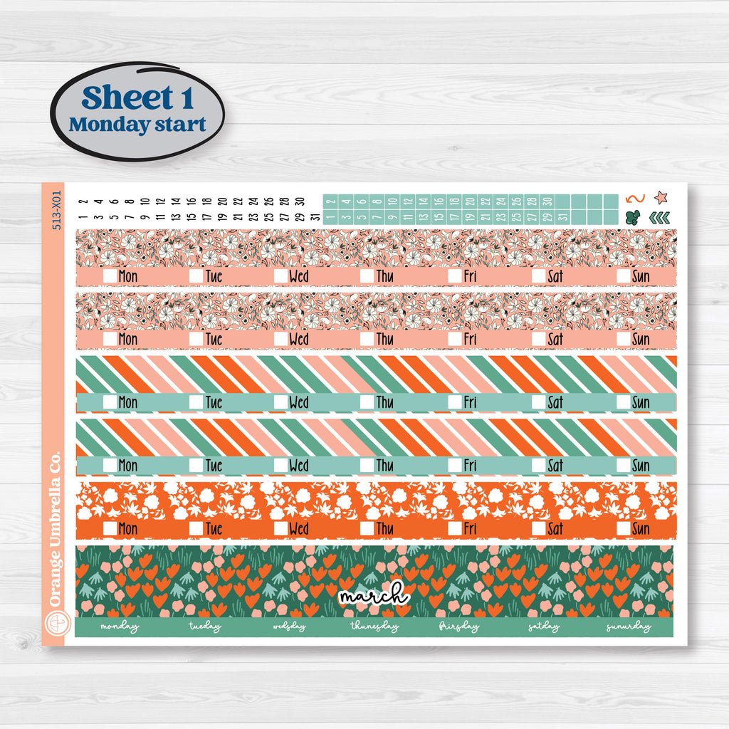 Monday through Thursday strips 4” x .49”, Friday through Sunday & to do Strip 3.9” x .49”; 31 date dots .25” x .25”, 4 labels .96” x .27”