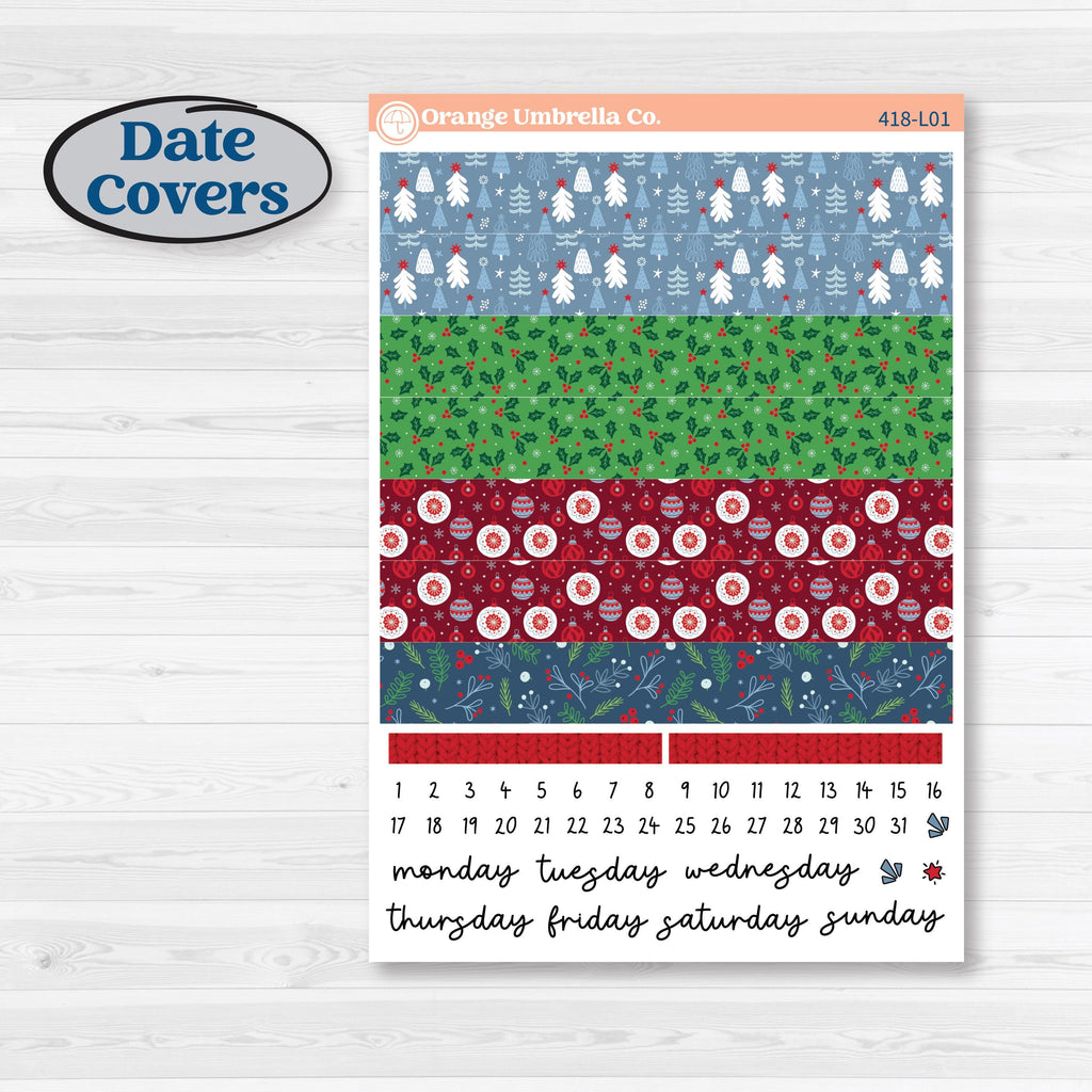 7 washi date covers 5.15β x .66β, 7 days of the week, 2 washi headers 2.46β x .23β, 31 date dots .27β