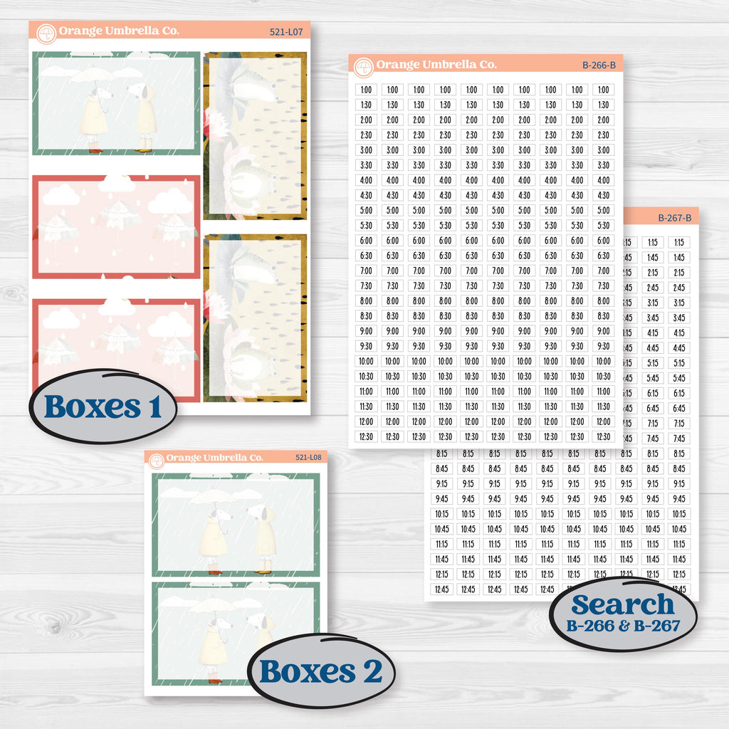 ☔ Sweet animals, cozy rain scenes, and storybook-style artwork give this kit a whimsical, comforting feel for your planner pages.