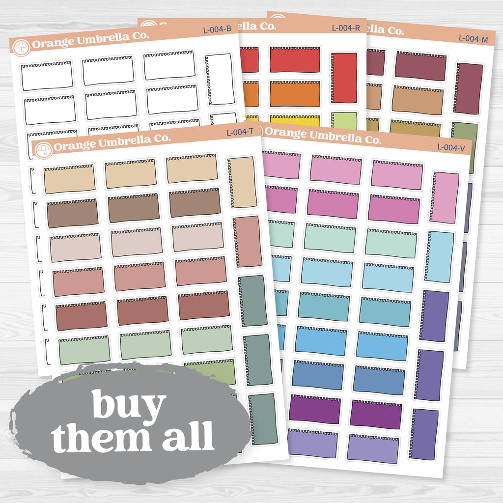 ✏️ These ripped notebook page–style labels add a fun, hand-drawn look to your planner, journal, or memory keeping pages. Originally designed for our journaling kits, these versatile labels are perfect for notes, prompts, layering, or highlighting special moments in your layouts.