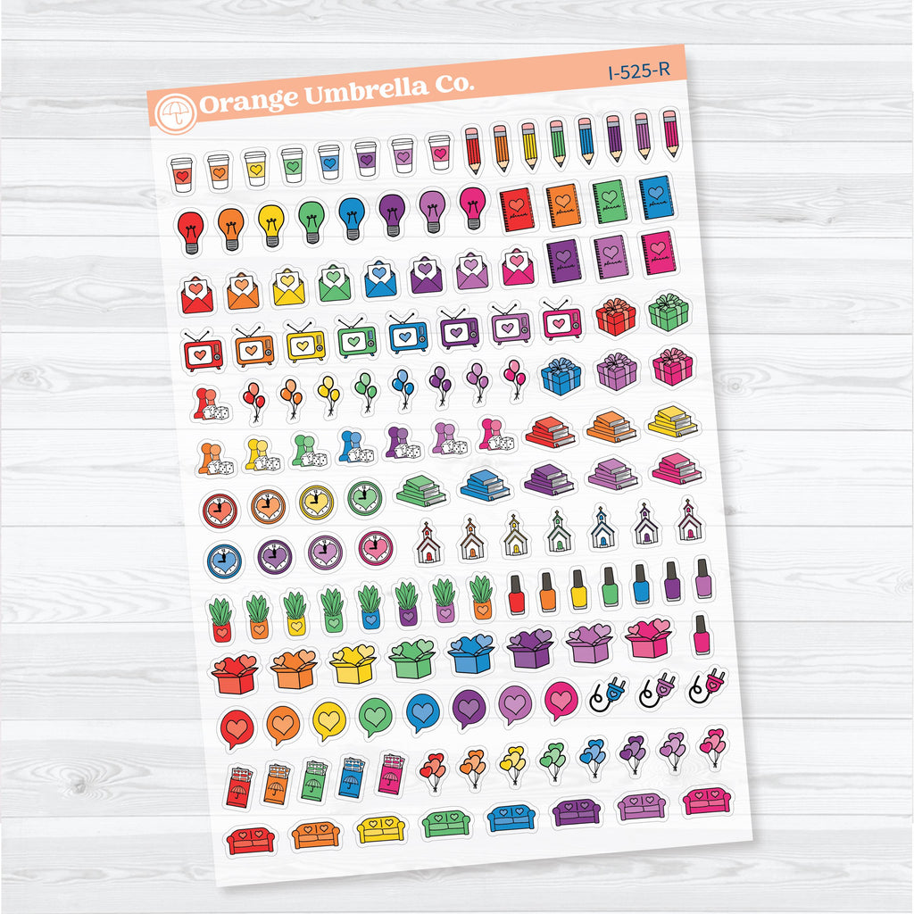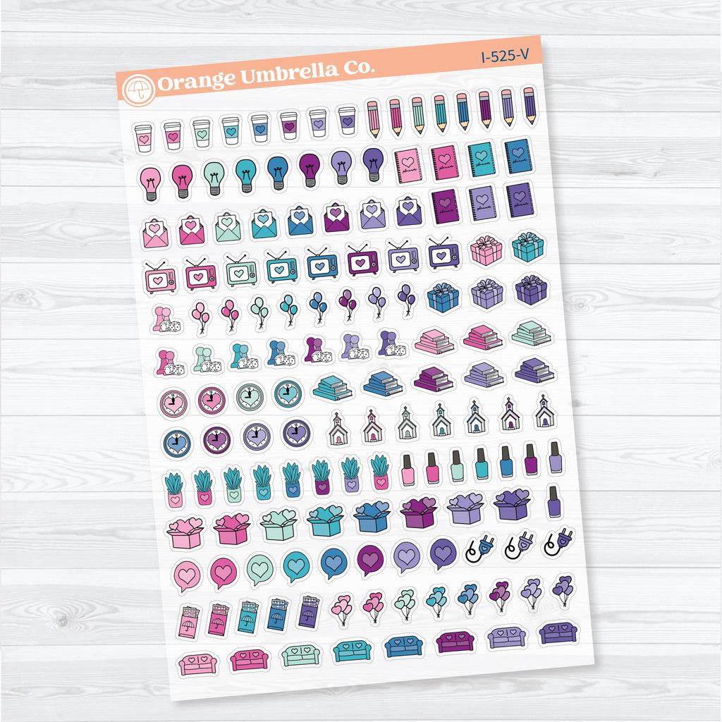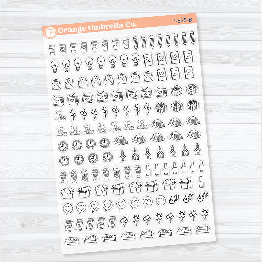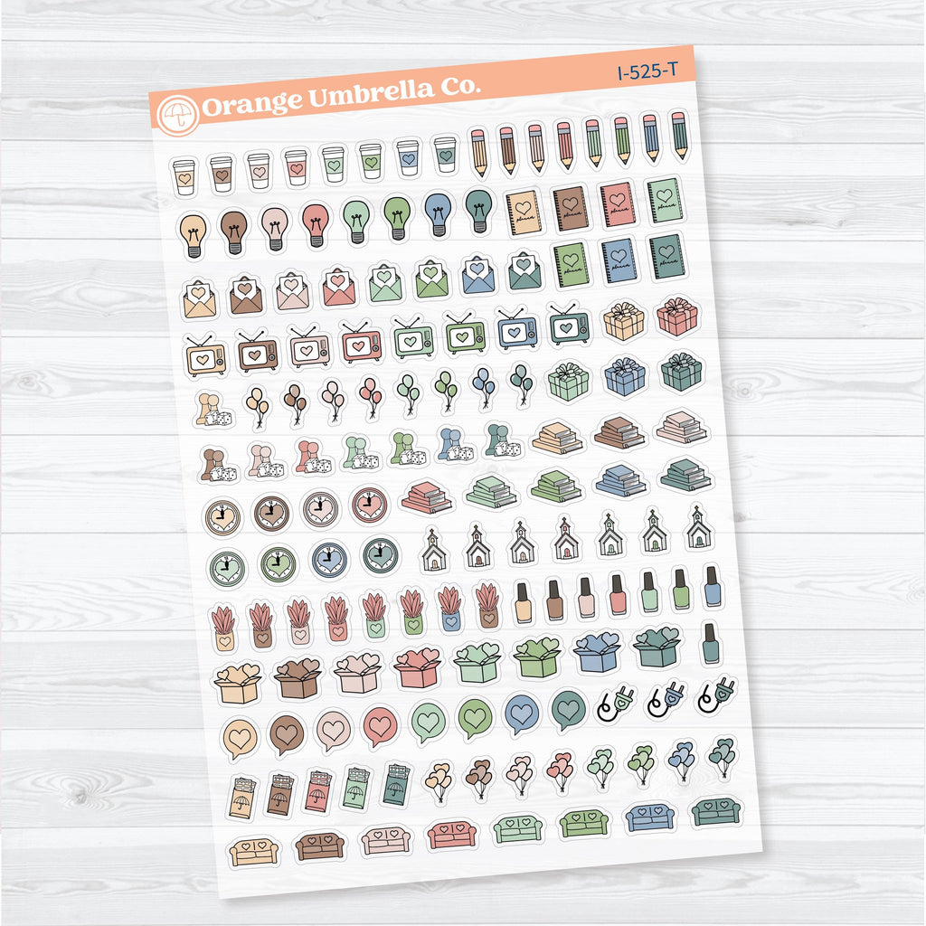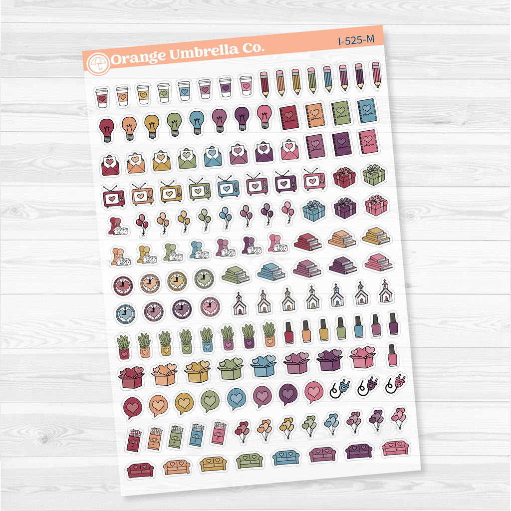Use these icons to mark self care days, hobbies, special moments, gifts, cozy time at home, creative projects, and everyday activities. This sampler-style sheet is designed to give you lots of variety in one place, so you always have the right icon on hand without switching sheets.