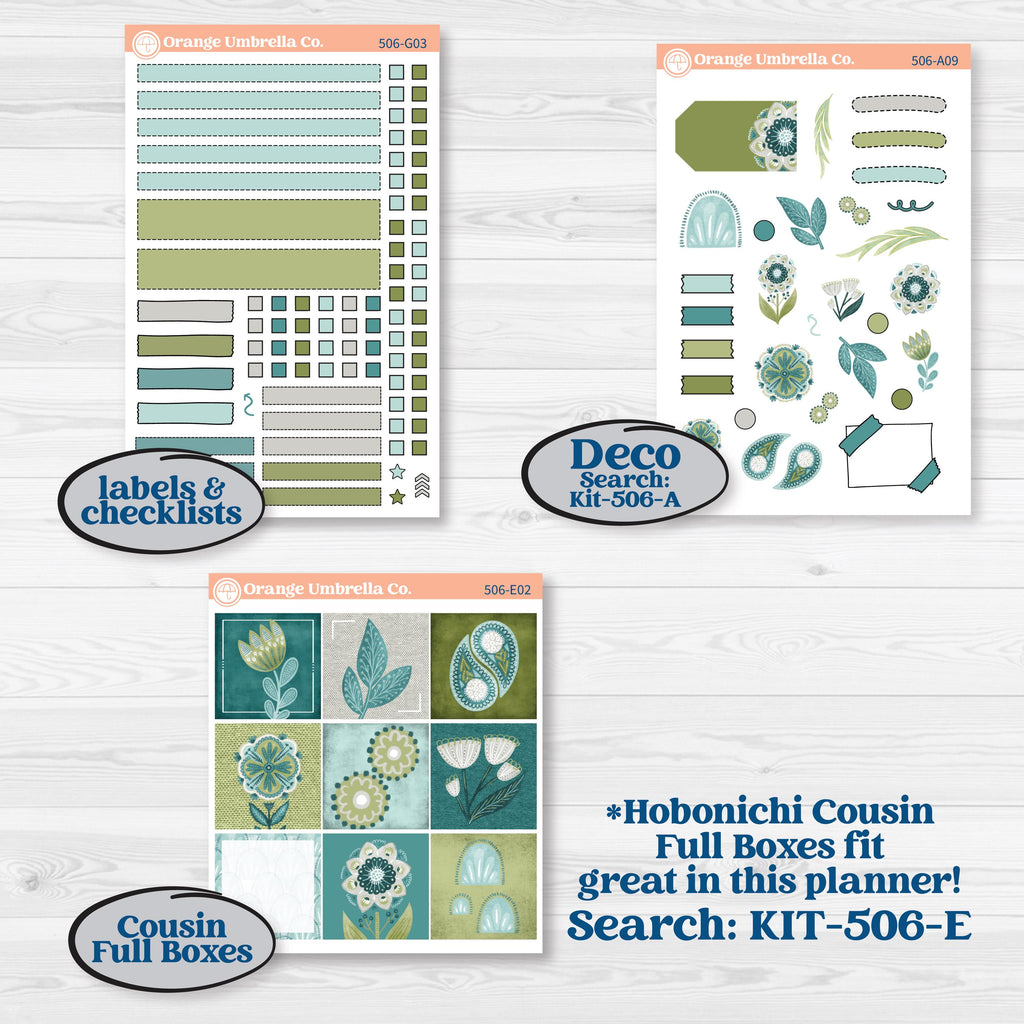 Top washi 6.5β x .75β, thin washi 6.5β x .24β, date covers 1.5β x .44β, various labels 3.1β wide, category labels 1.3β x .38β, 31 date dots, week of label and various doo dads included.
