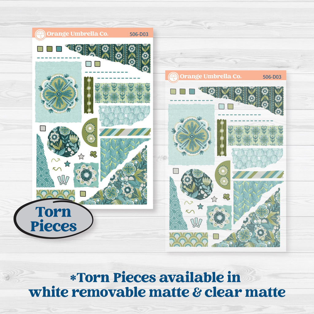 Two large torn washi 6.4β x .77β, 7 small labels 1.4β x .38β, 3 large labels 1.4β x .57β, days of the week 1.28β x .36β, torn corner 2.9β x .93β, various doo dads
