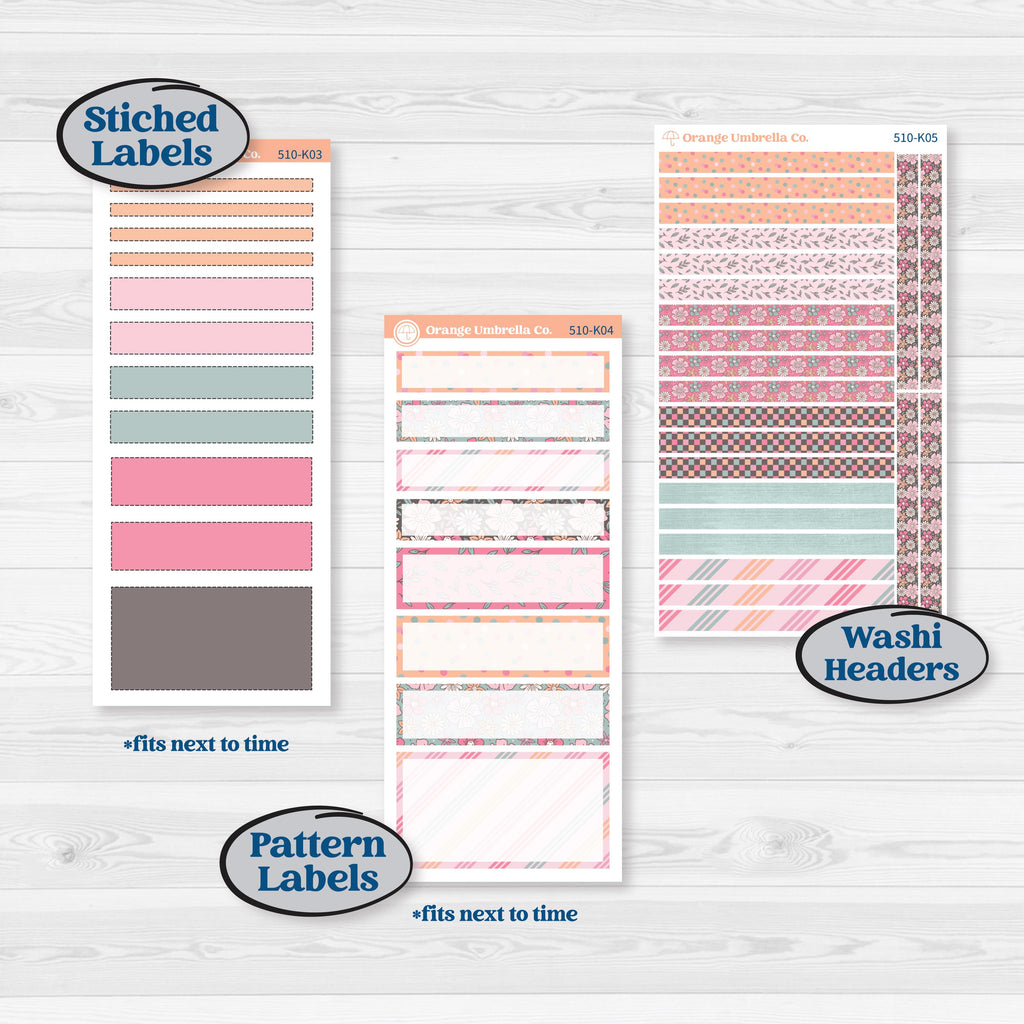 3 Washi Top Headers 6.5β x .75β, 7 date labels, 7 checklist strips, 3 habit trackers, various scripts, icons and labels.