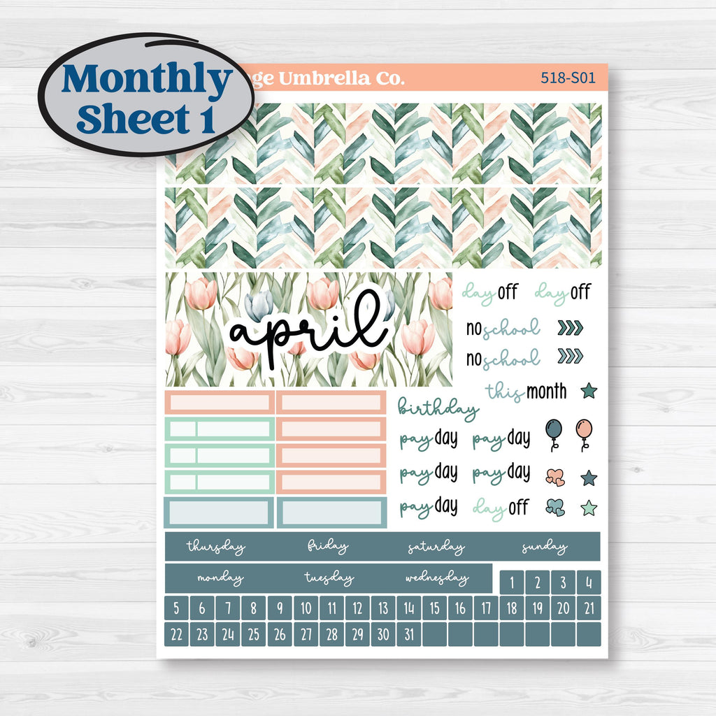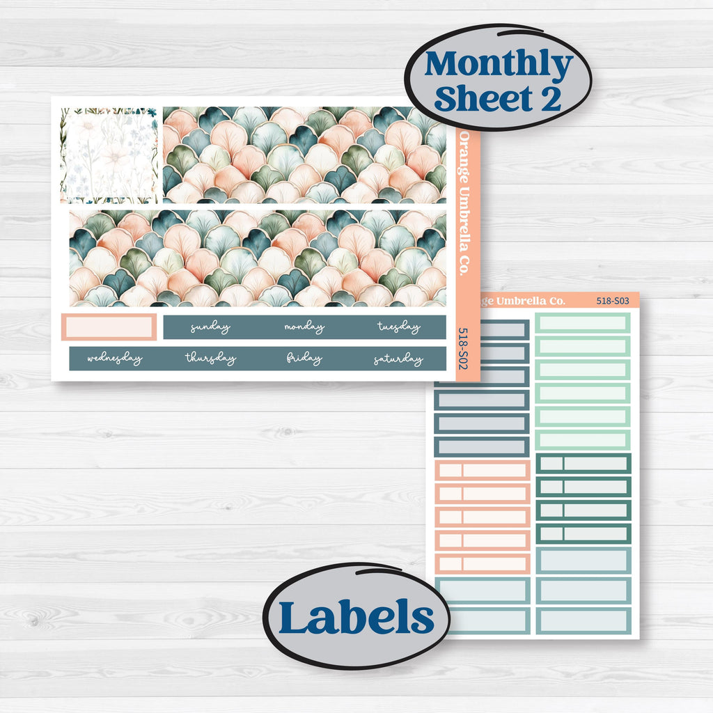 2 washi .92” x 5.2”, side bar month washi 1.32” x 3.42”, various labels 1.3” wide, day of the week strips .31” x 3.94” & .31” x 5.26”, date dots .25”, various scripts and doo dads.