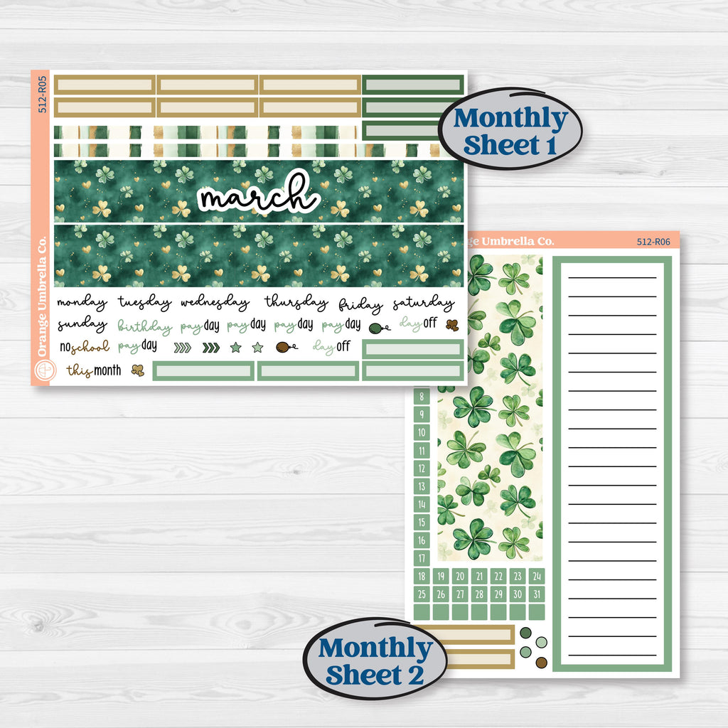 🍀 Rich emerald greens, warm gold accents, and classic lucky charm imagery bring a festive St. Patrick’s Day feel to your planner spreads.