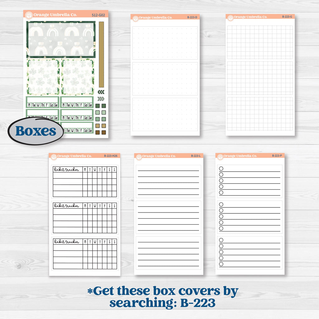 Right page, left box cover 1.69” x 3.2”, 2 half habit tracker cover boxes 1.69” x 1.5” (also make great boxes for anywhere on the layout!), 6 habit trackers 1.53” x .51”, various doo dads and label included.
