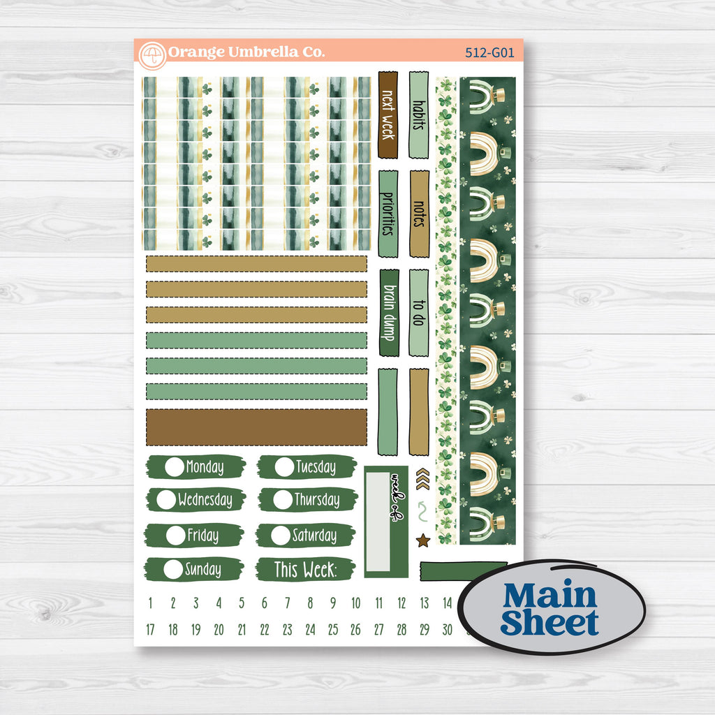 Top washi 6.5” x .75”, thin washi 6.5” x .24”, date covers 1.5” x .44”, various labels 3.1” wide, category labels 1.3” x .38”, 31 date dots, week of label and various doo dads included.