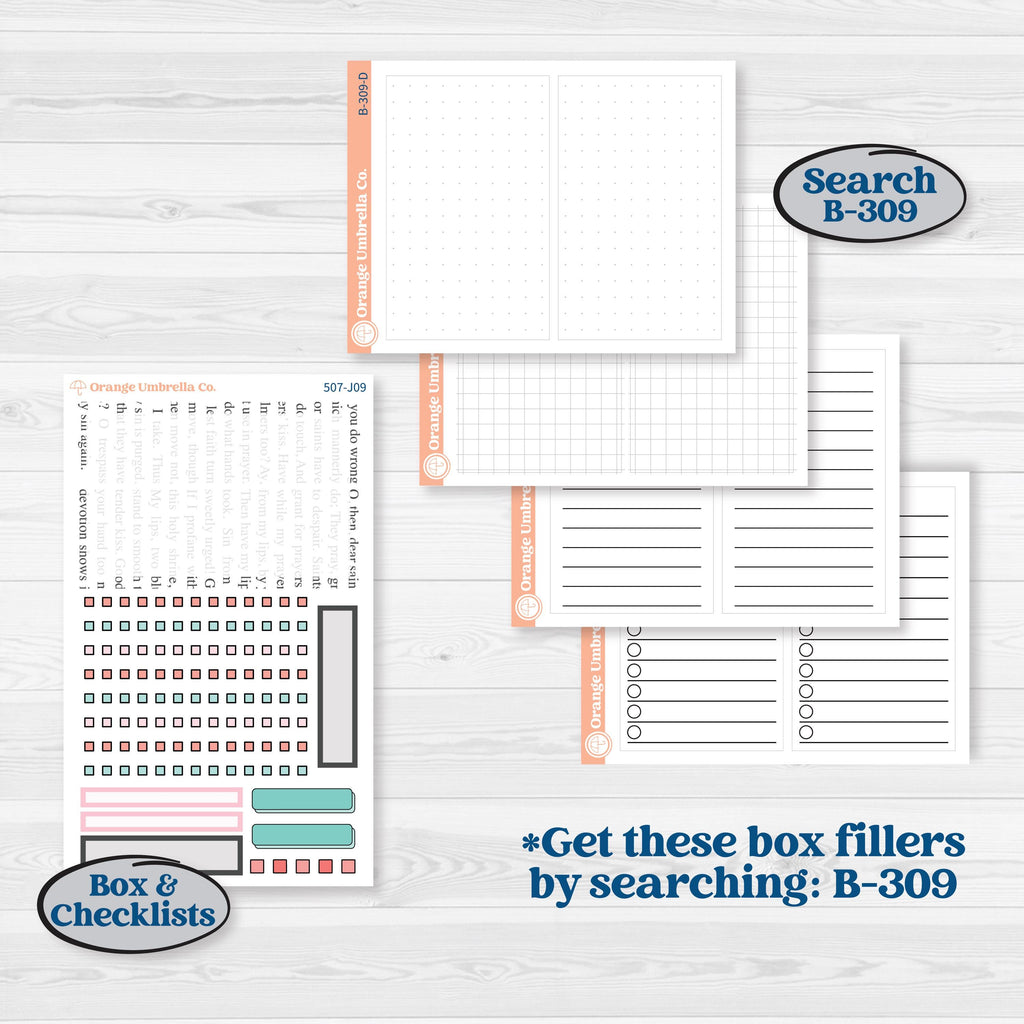 3 washi headers 5.15β x .66β. These are for the Week at a glance page, the page facing the week at a glance and the page after Sunday. When purchased in combination with the Date Covers you will have enough stickers for the top of every page dedicated to the week. 7 checklist strips, 3 habit trackers, 7 day of the week labels, week of, 3 labels and various icons.