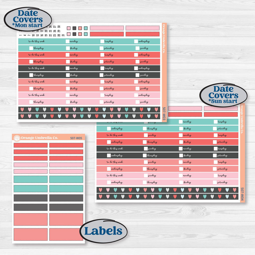 5 weeks worth of date covers 7.75β x .3β, 2 strips of washi 7.75β x .3β, 31 date dots .2β x .2β, 4 labels 1.9β x .3β